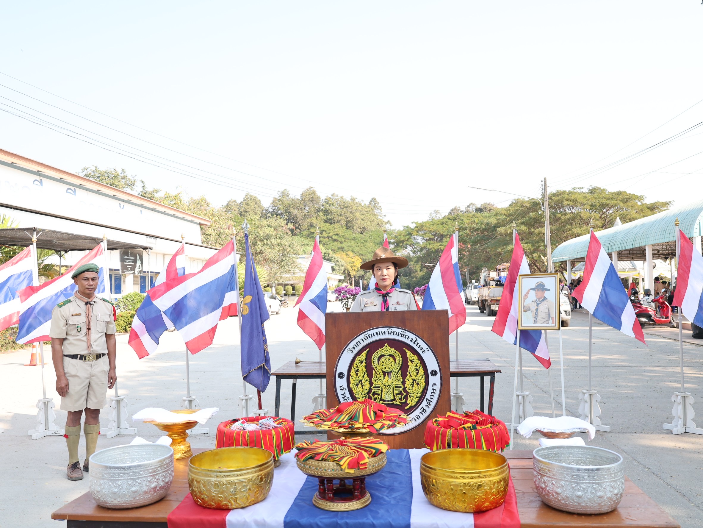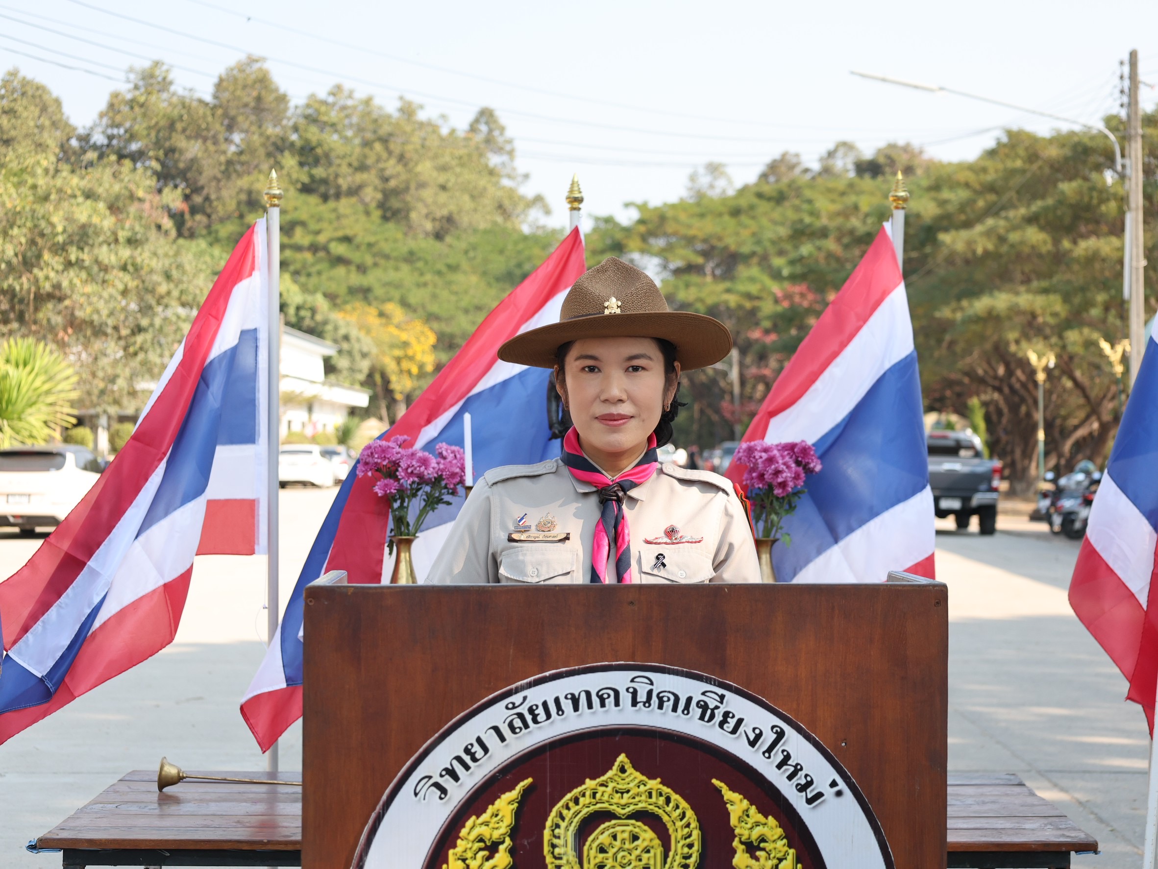 ดร.วัชรพงศ์ ฝั้นติ๊บ ผู้อำนวยการวิทยาลัยเทคนิคเชียงใหม่ ปฏิบัติหน้าที่ผู้อำนวยการสำนักงานอาชีวศึกษาจังหวัดเชียงใหม่ และรักษาการในตำแหน่งที่ปรึกษาด้านนโยบายและแผน สำนักงานคณะกรรมการการอาชีวศึกษา ได้มอบหมายให้ นางศศิกาญจน์ เรือนศาสตร์ รองผู้อำนวยการฝ่ายพัฒนากิจการนักเรียนนักศึกษา เป็นประธานในพิธีประดับแถบเสือลูกเสือวิสามัญ และพิธีปิดกองลูกเสือวิสามัญ–เนตรนารี ประจำปีการศึกษา 2568 พร้อมทั้งกล่าวให้โอวาทแก่ลูกเสือ–เนตรนารีในพิธีครั้งนี้
