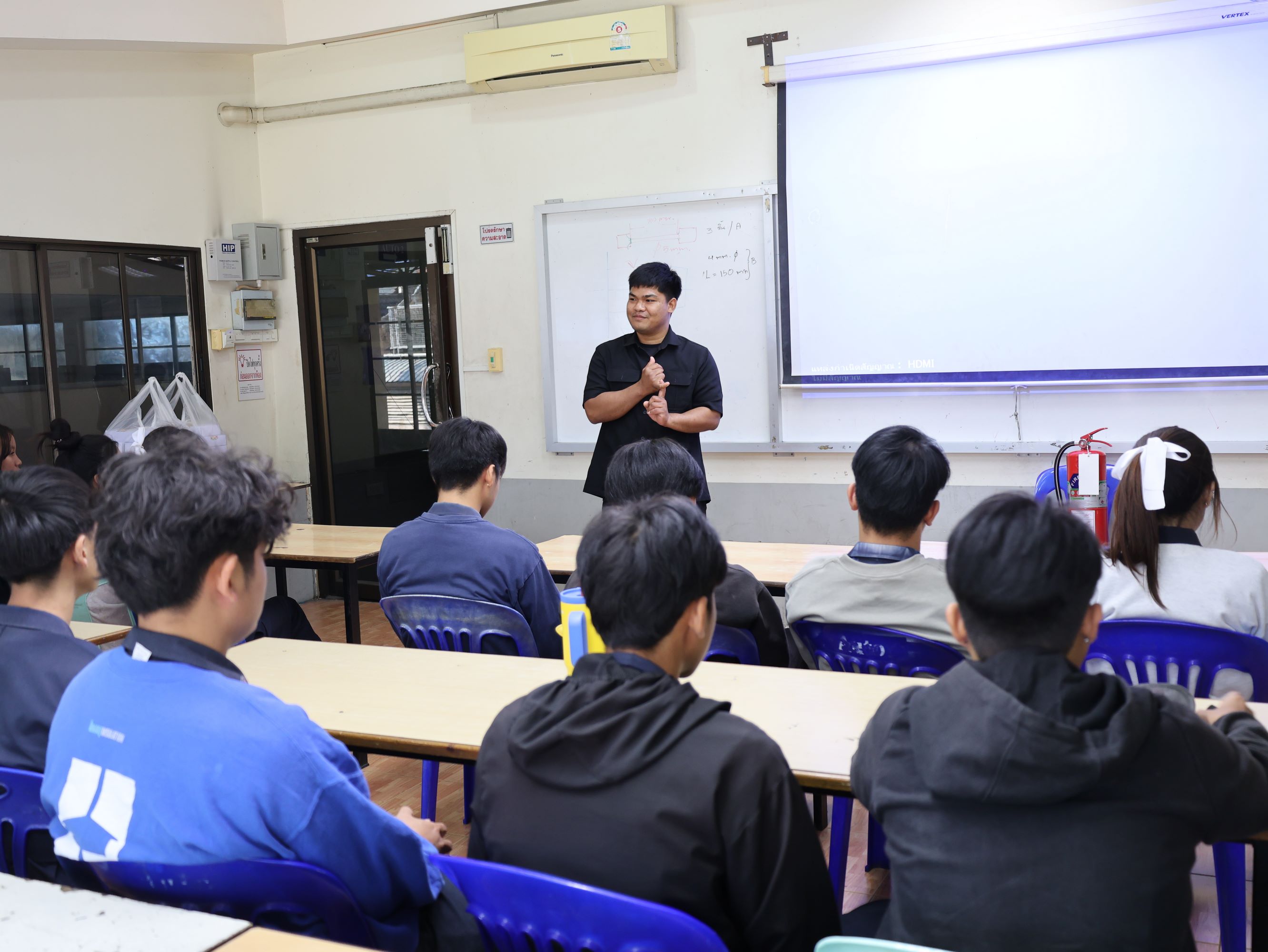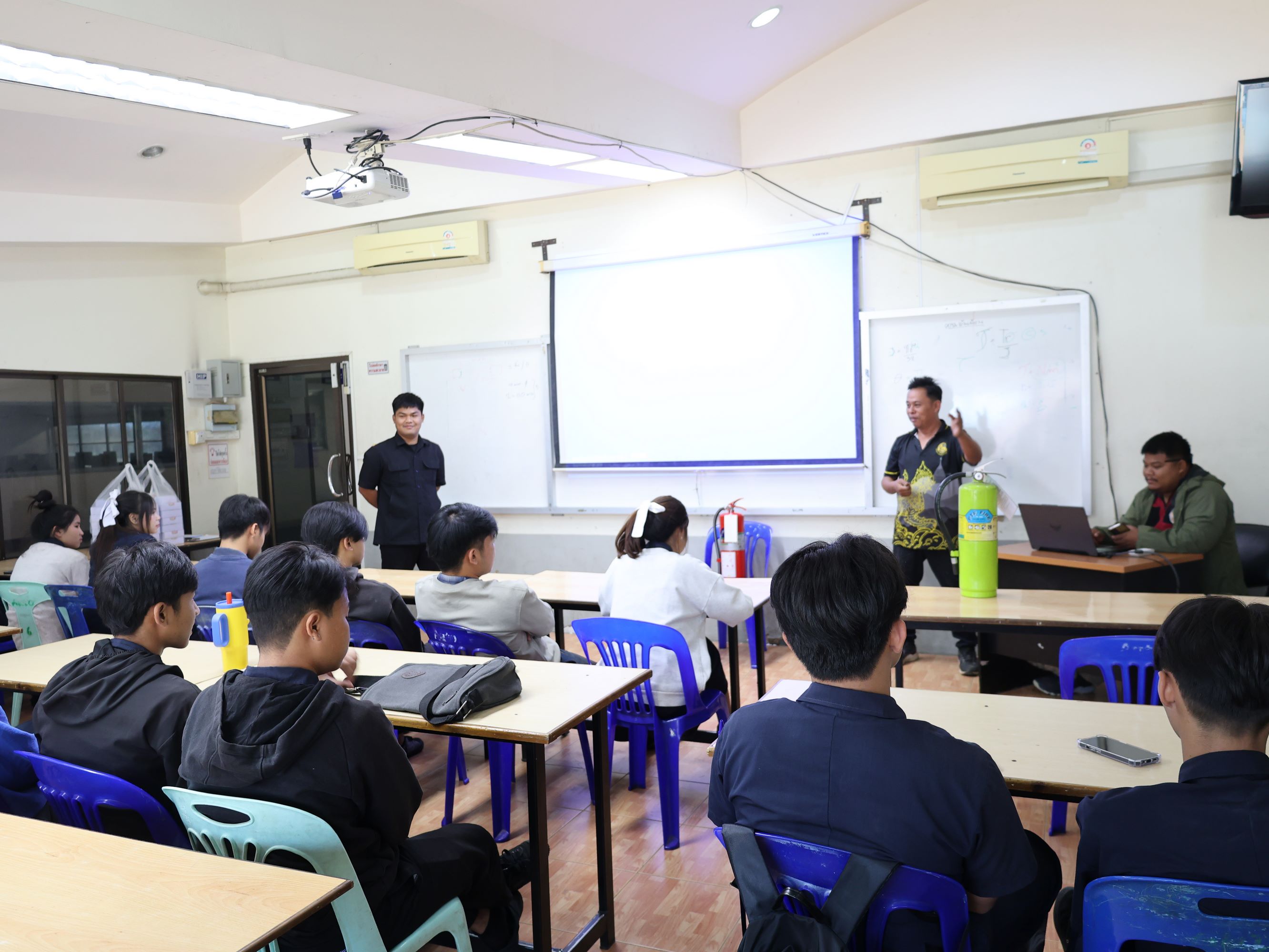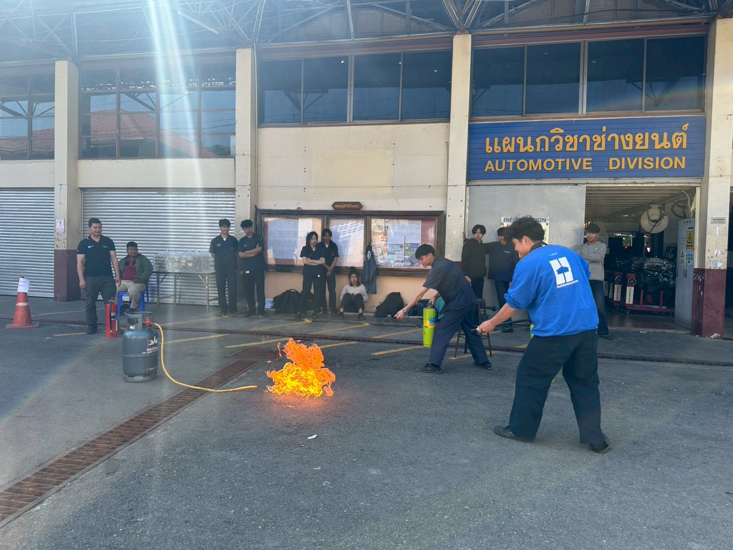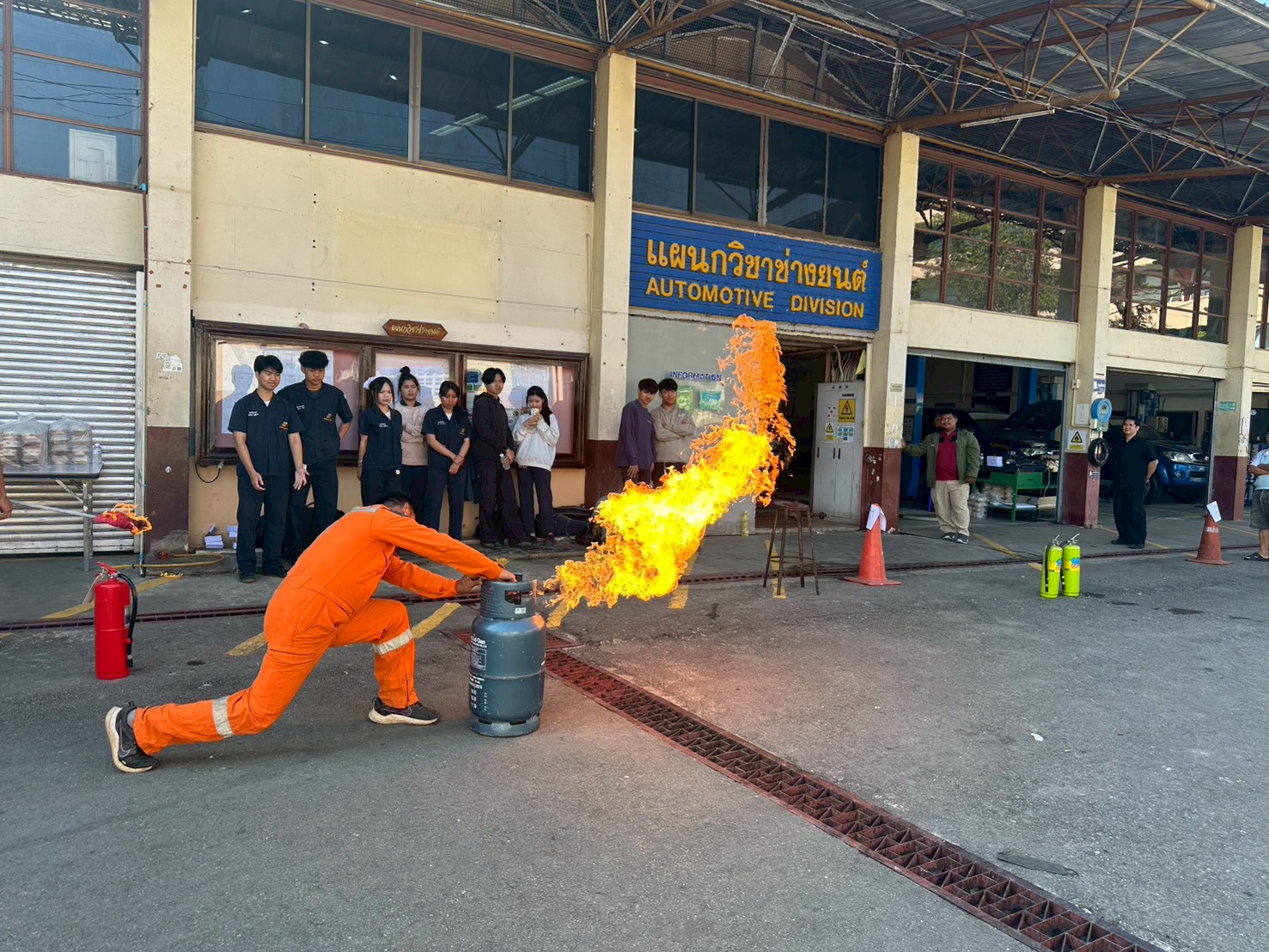 ดร.วัชรพงศ์ ฝั้นติ๊บ ผู้อำนวยการวิทยาลัยเทคนิคเชียงใหม่ ปฏิบัติหน้าที่ผู้อำนวยการสำนักงานอาชีวศึกษาจังหวัดเชียงใหม่ และรักษาการในตำแหน่งที่ปรึกษาด้านนโยบายและแผน สำนักงานคณะกรรมการการอาชีวศึกษา มอบหมายให้ นายดนัย ชาวคำเขต หัวหน้าแผนกวิชาช่างยนต์ พร้อมด้วยคณะครูแผนกวิชาช่างยนต์ และแผนกวิชาช่างอิเล็กทรอนิกส์ นำนักเรียนทุนนวัตกรรมสายอาชีพชั้นสูง รุ่นที่ 6 ประเภททุน 5 ปี ประจำปีการศึกษา 2568 จำนวน 22 คน เข้าร่วม โครงการป้องกันและระงับอัคคีภัยในสถานประกอบการ