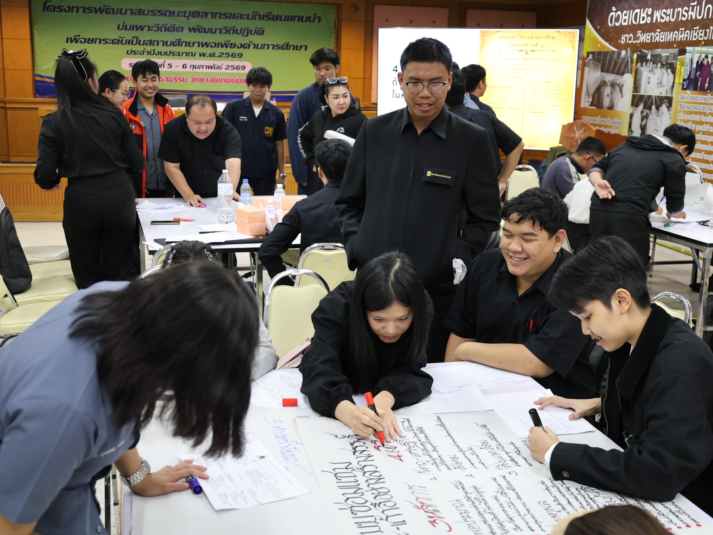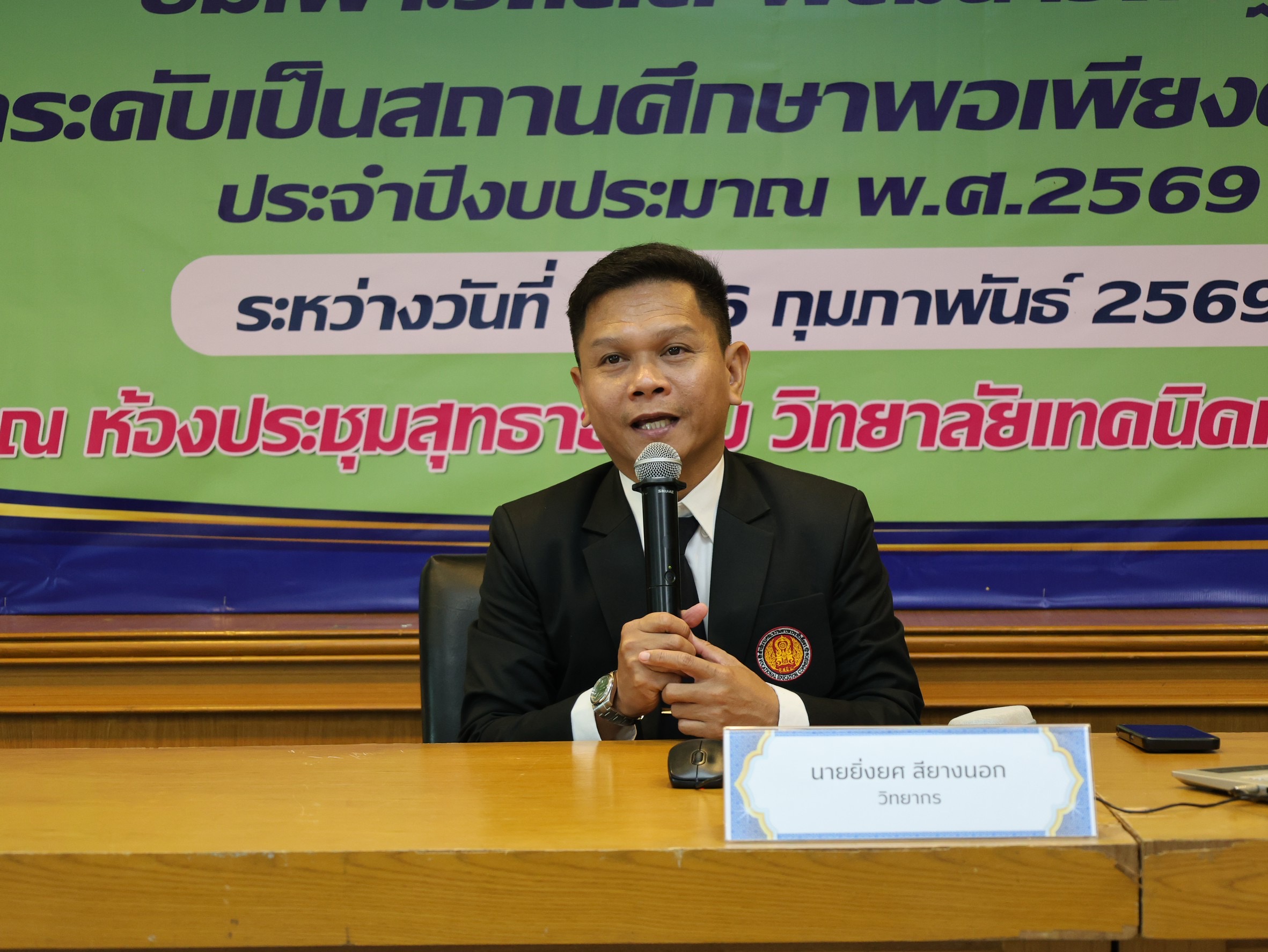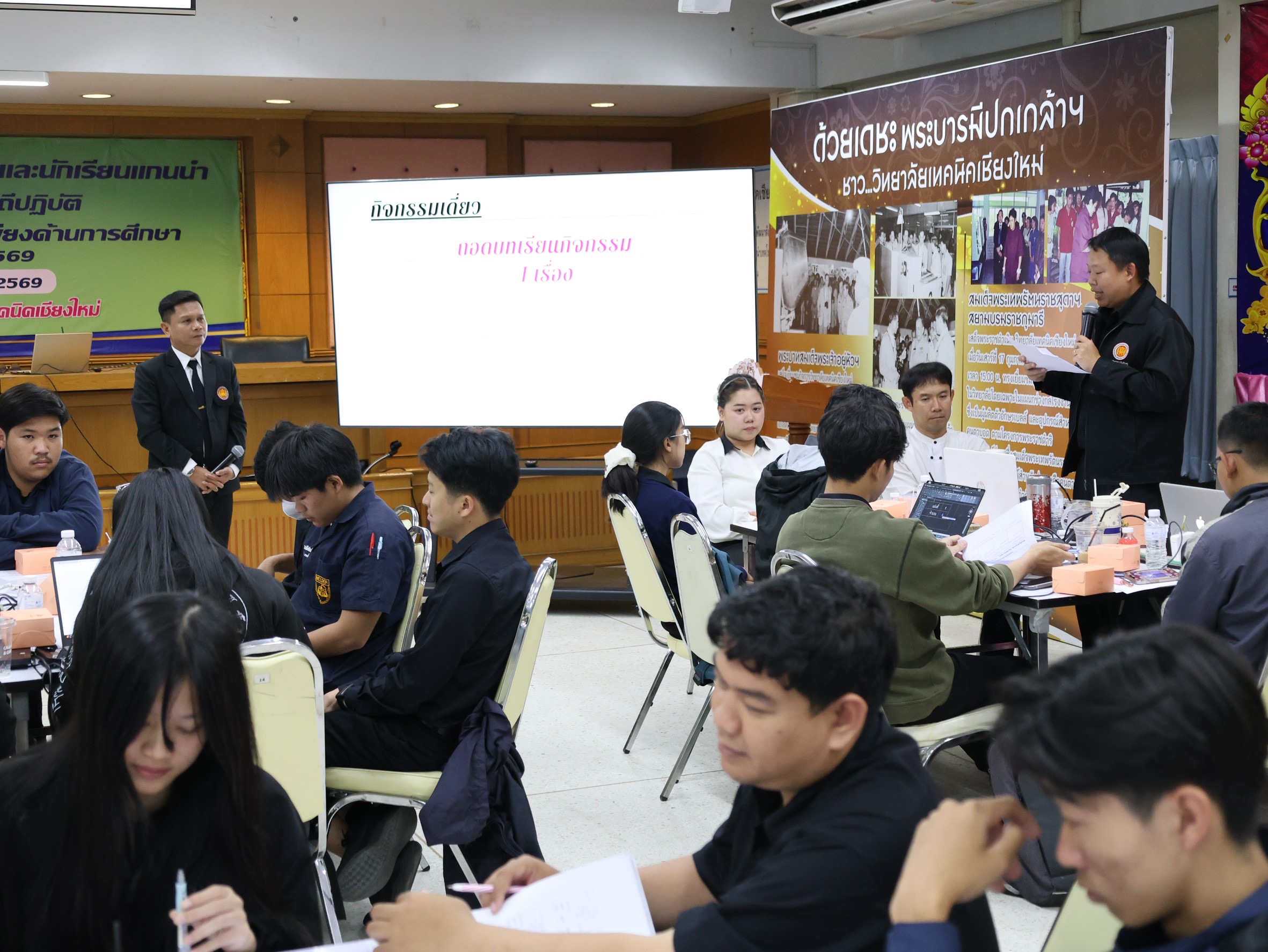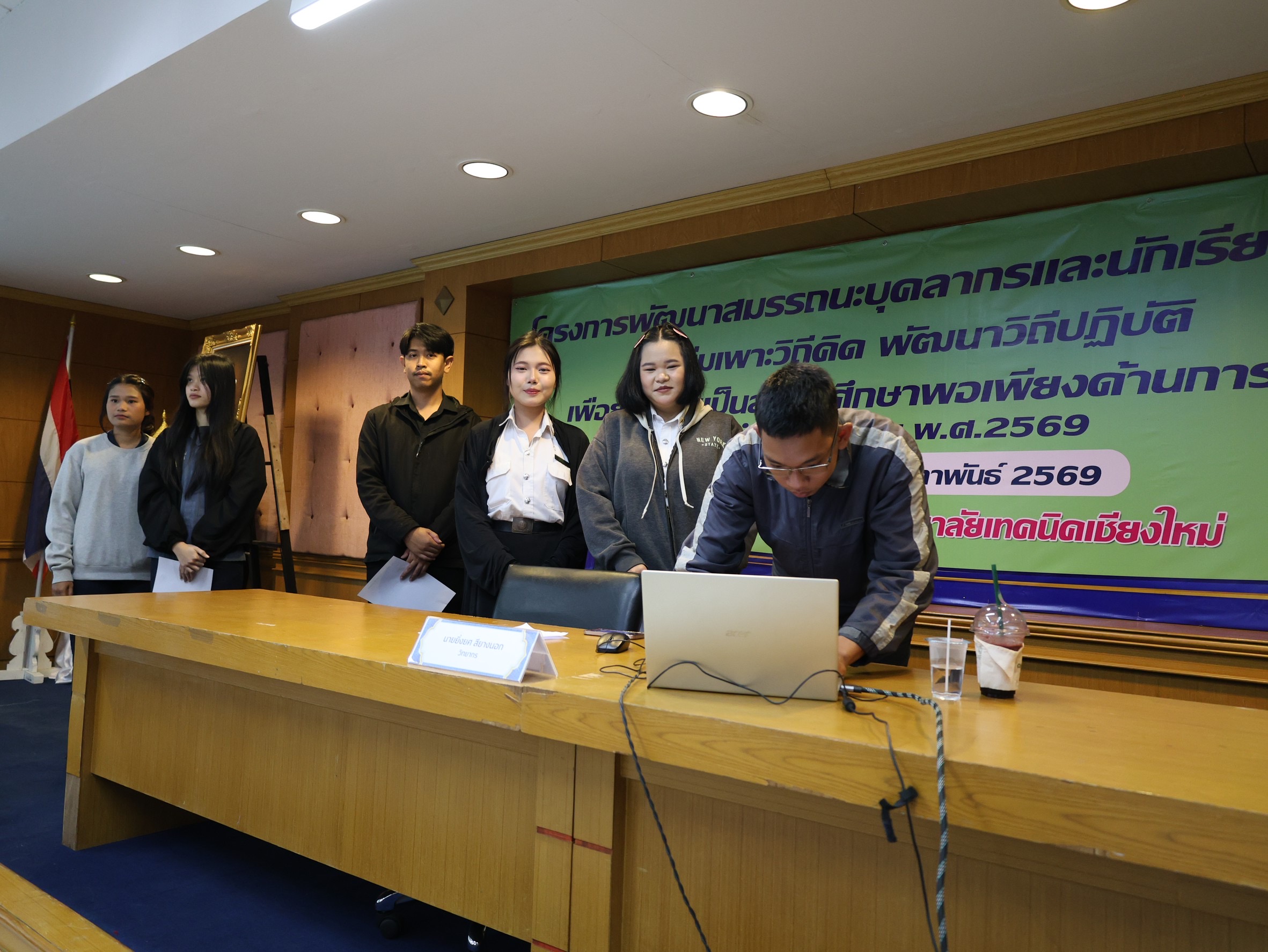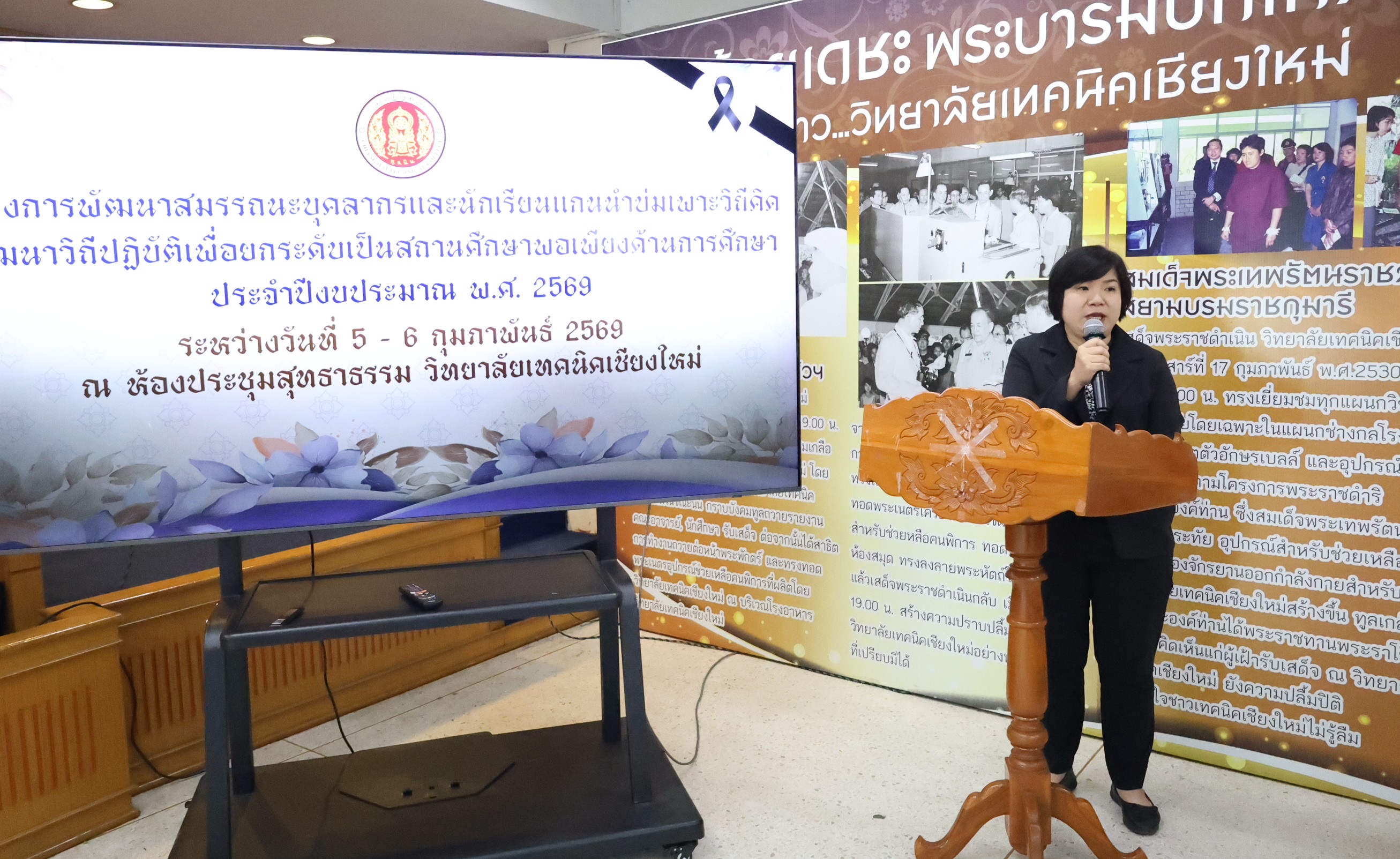 ดร.วัชรพงศ์ ฝั้นติ๊บ ผู้อำนวยการวิทยาลัยเทคนิคเชียงใหม่ ปฏิบัติหน้าที่ผู้อำนวยการสำนักงานอาชีวศึกษาจังหวัดเชียงใหม่ และรักษาการในตำแหน่งที่ปรึกษาด้านนโยบายและแผน สำนักงานคณะกรรมการการอาชีวศึกษามอบหมายให้ นายชรันต์ยุทธ์ บุญยง รองผู้อำนวยการฝ่ายบริหารทรัพยากร เป็นประธานในพิธีเปิด โครงการพัฒนาสมรรถนะบุคลากรและนักเรียนแกนนำ บ่มเพาะวิถีคิด พัฒนาวิถีปฏิบัติ เพื่อยกระดับเป็นสถานศึกษาพอเพียงด้านการศึกษา ประจำปีงบประมาณ 2569 ระหว่างวันที่ 5 - 6 กุมภาพันธ์ 2569 ณ ห้องประชุมสุทธาธรรม วิทยาลัยเทคนิคเชียงใหม่