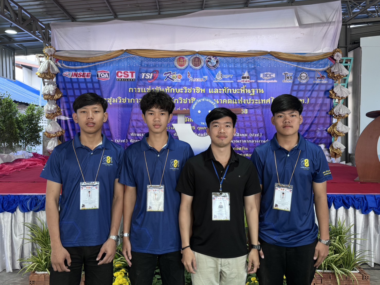 ดร.วัชรพงศ์ ฝั้นติ๊บ ผู้อำนวยการวิทยาลัยเทคนิคเชียงใหม่ ปฏิบัติหน้าที่ผู้อำนวยการสำนักงานอาชีวศึกษาจังหวัดเชียงใหม่ และรักษาการในตำแหน่งที่ปรึกษาด้านนโยบายและแผน สำนักงานคณะกรรมการการอาชีวศึกษา มอบหมายให้ นายพิวัธกาญจน์ เหมืองคำ ครูแผนกวิชาช่างก่อสร้าง นำนักเรียน นักศึกษา เข้าร่วมการแข่งขันทักษะวิชาชีพ และทักษะพื้นฐาน ระดับชาติ ประจำปีการศึกษา 2568 ณ จังหวัดบุรีรัมย์ โดยมีผลการแข่งขันดังนี้