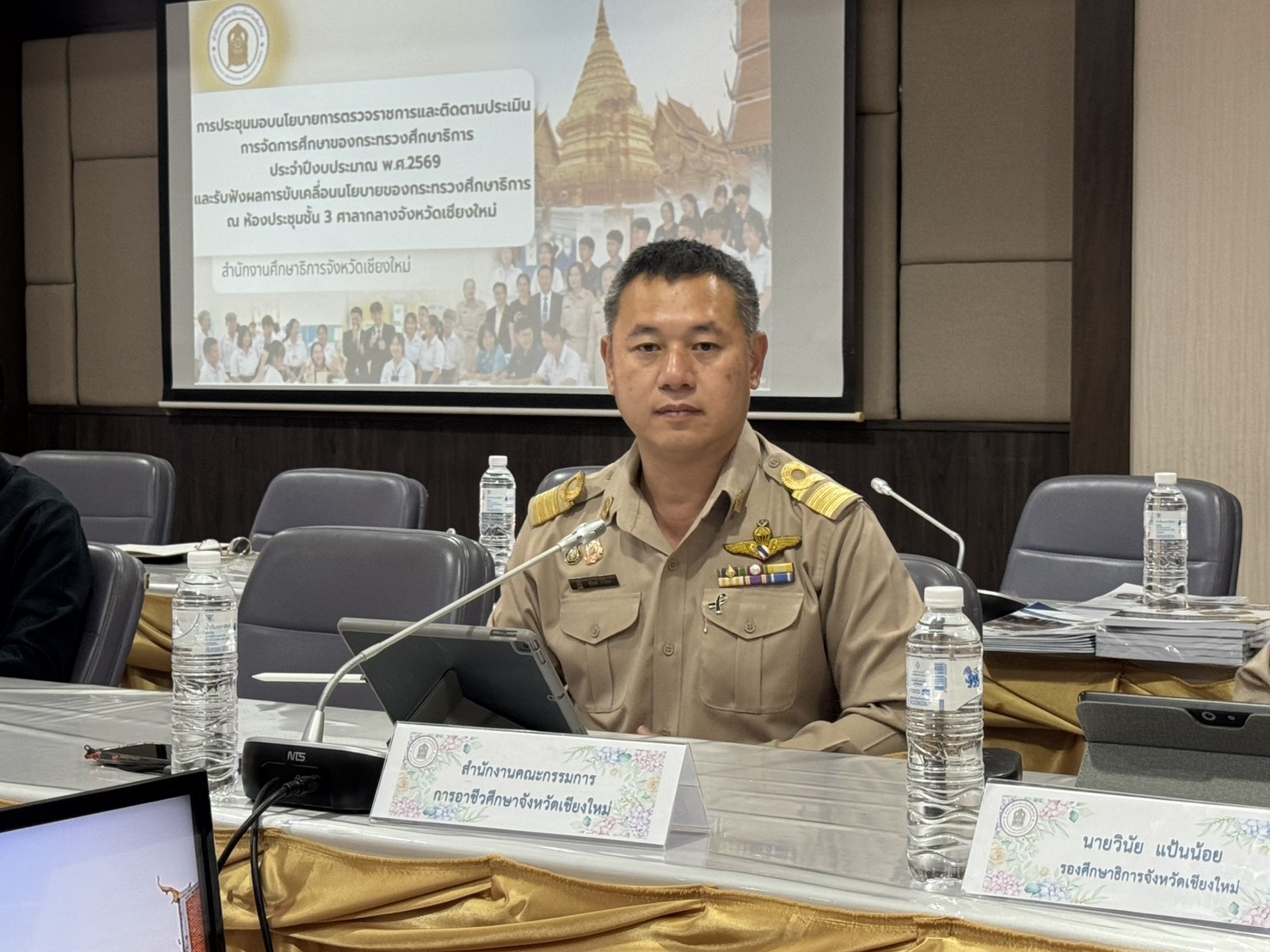 ดร.วัชรพงศ์ ฝั้นติ๊บ ผู้อำนวยการวิทยาลัยเทคนิคเชียงใหม่ ปฏิบัติหน้าที่ผู้อำนวยการสำนักงานอาชีวศึกษาจังหวัดเชียงใหม่ และรักษาการในตำแหน่งที่ปรึกษาด้านนโยบายและแผน สำนักงานคณะกรรมการการอาชีวศึกษา ได้มอบหมาย นายสุจินต์ วังใหม่ รองผู้อำนวยการวิทยาลัยเทคนิคเชียงใหม่ และนายฐาปนันท์ ปัญญามี หัวหน้าสำนักงานอาชีวศึกษาจังหวัดเชียงใหม่ เป็น ผู้แทน เข้าร่วมประชุมและรายงานผลการดำเนินงานตามนโยบายการตรวจราชการและติดตามประเมินผลการจัดการศึกษาประจำปีงบประมาณ พ.ศ. 2569 รอบที่ 1