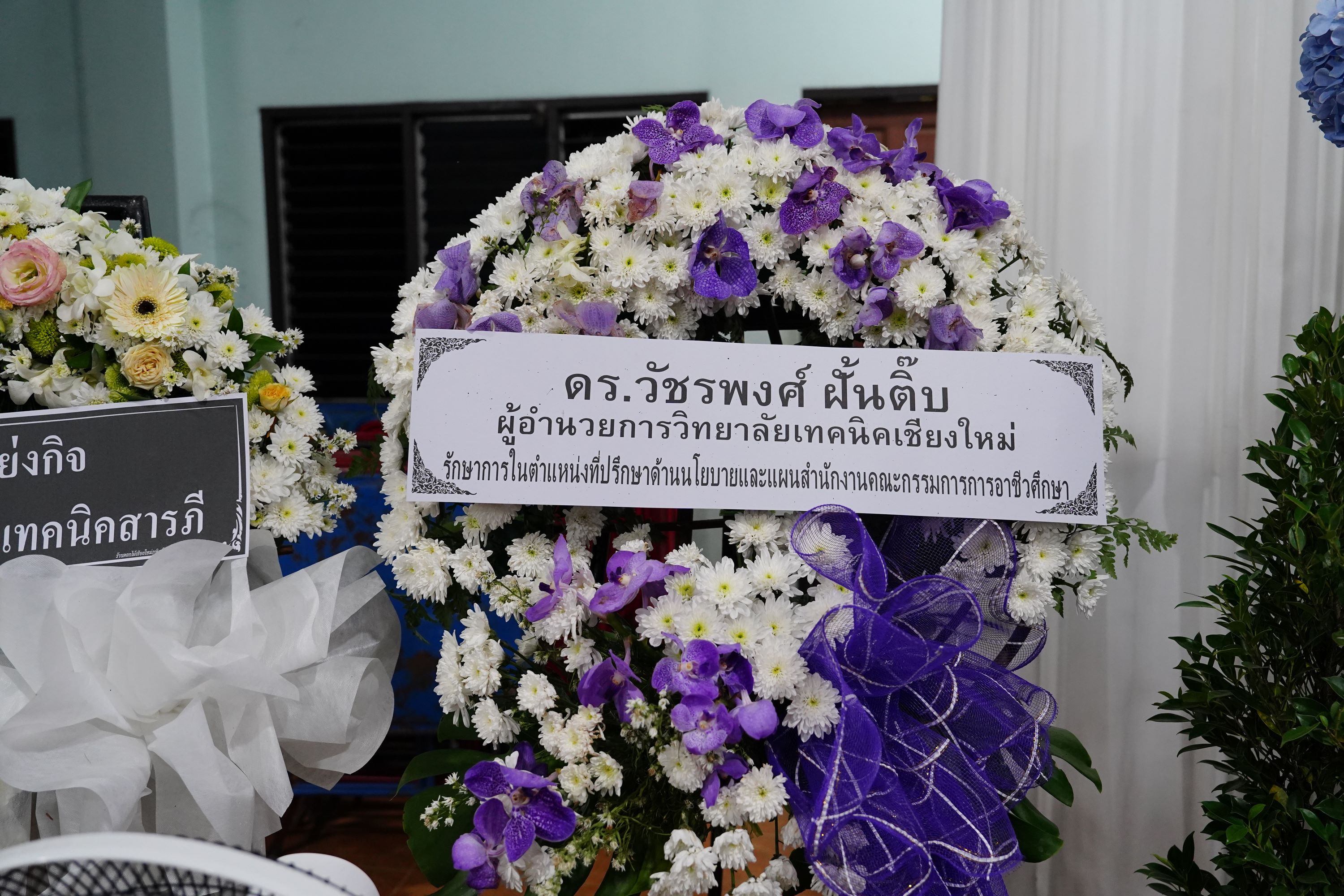 ดร.วัชรพงศ์ ฝั้นติ๊บ ผู้อำนวยการวิทยาลัยเทคนิคเชียงใหม่ ปฏิบัติหน้าที่ผู้อำนวยการสำนักงานอาชีวศึกษาจังหวัดเชียงใหม่ และรักษาการในตำแหน่งที่ปรึกษาด้านนโยบายและแผน สำนักงานคณะกรรมการการอาชีวศึกษา พร้อมด้วยคณะผู้บริหาร คณะครู และบุคลากรทางการศึกษา วิทยาลัยเทคนิคเชียงใหม่ ร่วมพิธีพระราชทานเพลิงศพ คุณพ่ออินตา แผ่นฟ้า บิดาของนางสาววราภรณ์ แผ่นฟ้า พนักงานราชการครู แผนกวิชาเทคโนโลยีสารสนเทศ ณ วัดดอนจืน หมู่ที่ 3 ตำบลหนองผึ้ง อำเภอสารภี จังหวัดเชียงใหม่ และร่วมพิธีฌาปนกิจ ณ สุสานสันคือ ตำบลหนองผึ้ง อำเภอสารภี จังหวัดเชียงใหม่