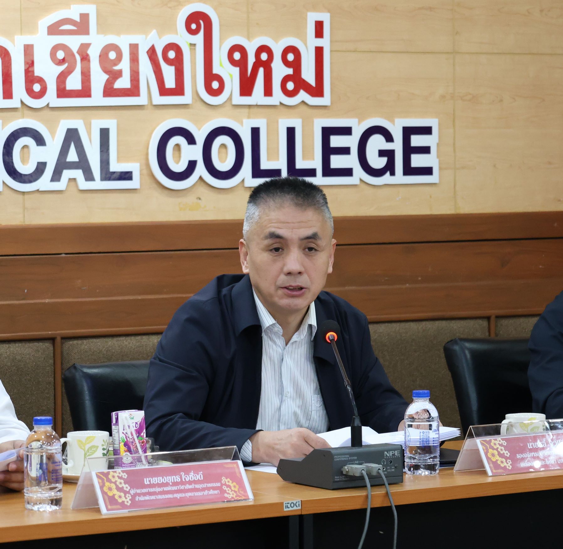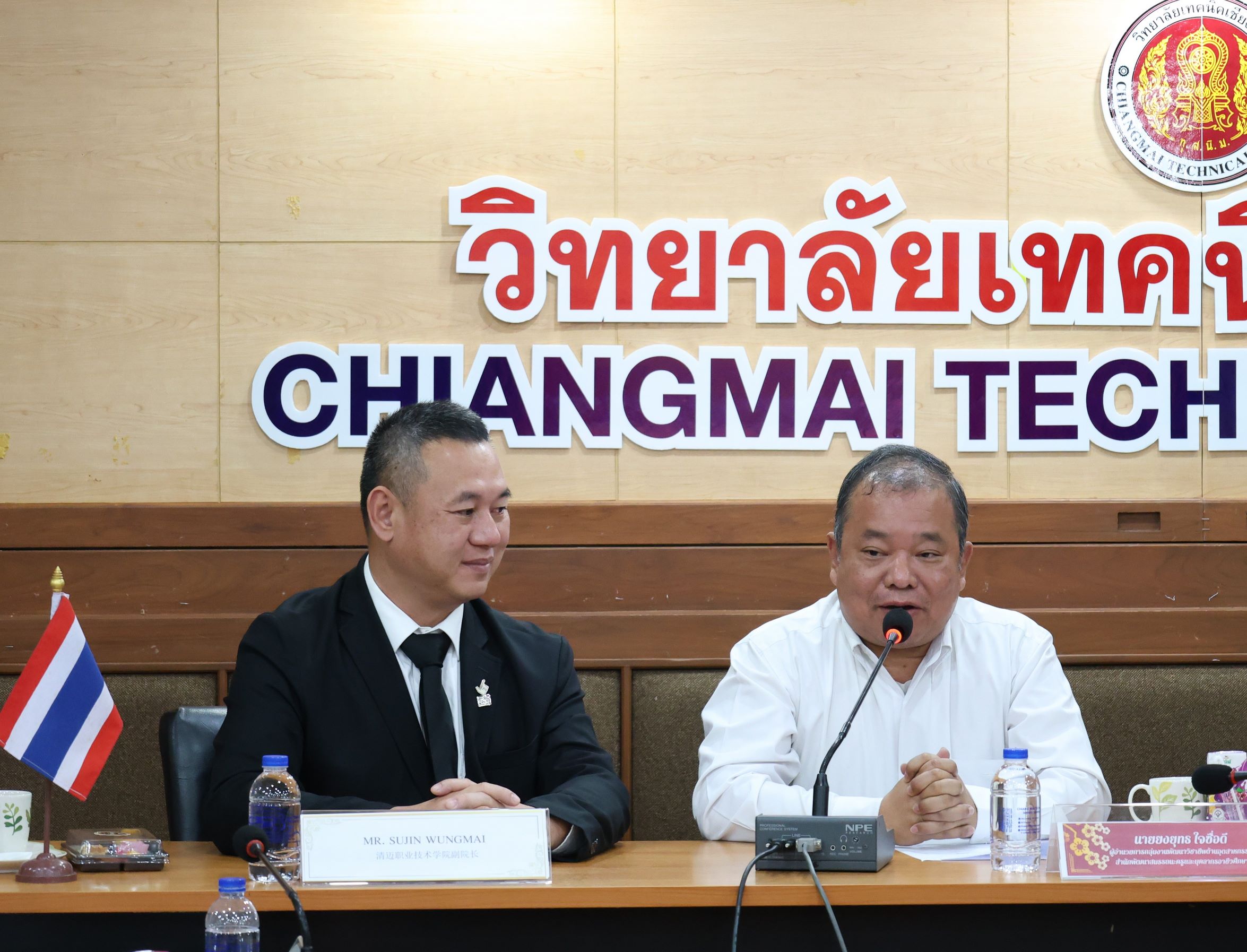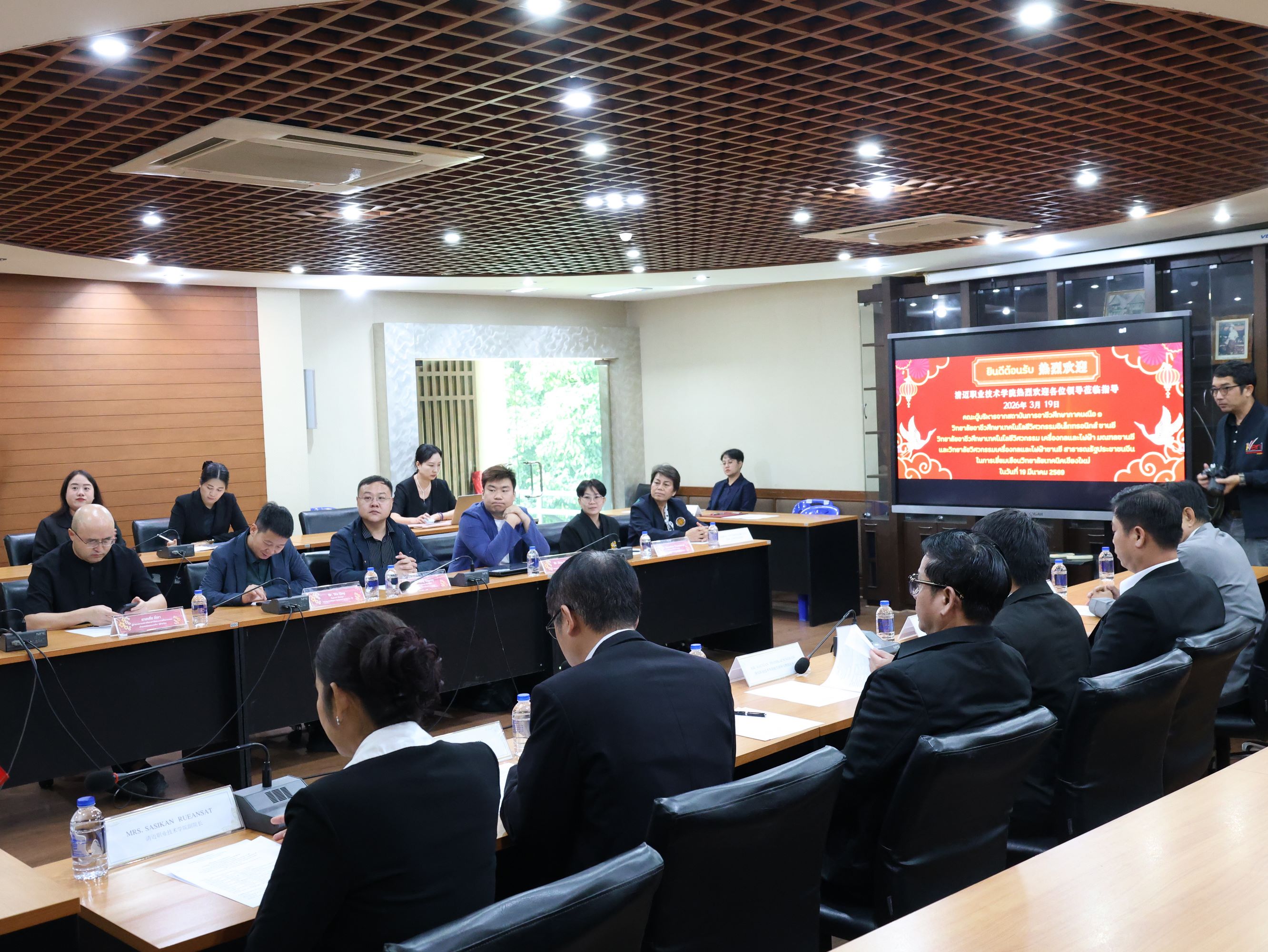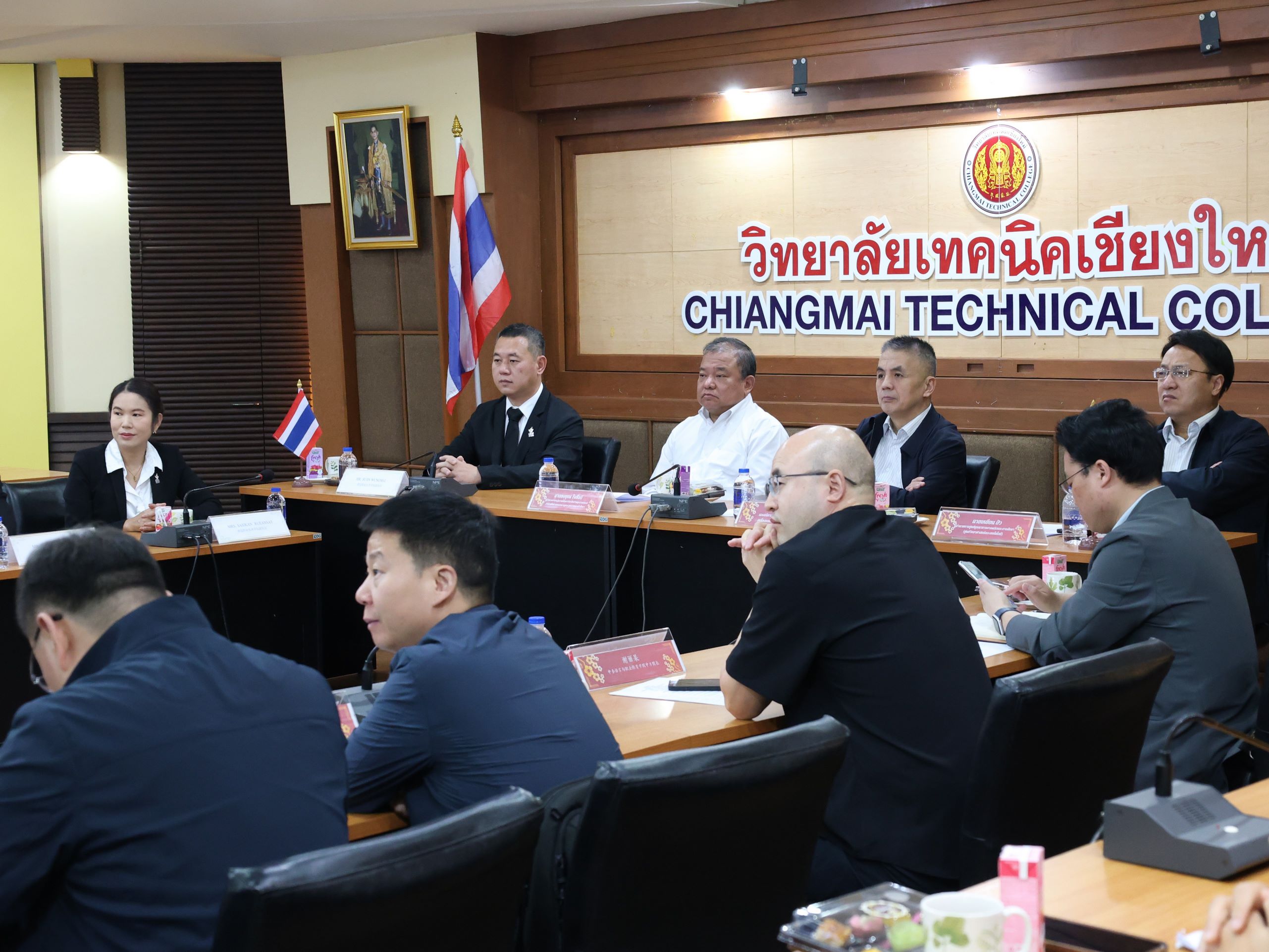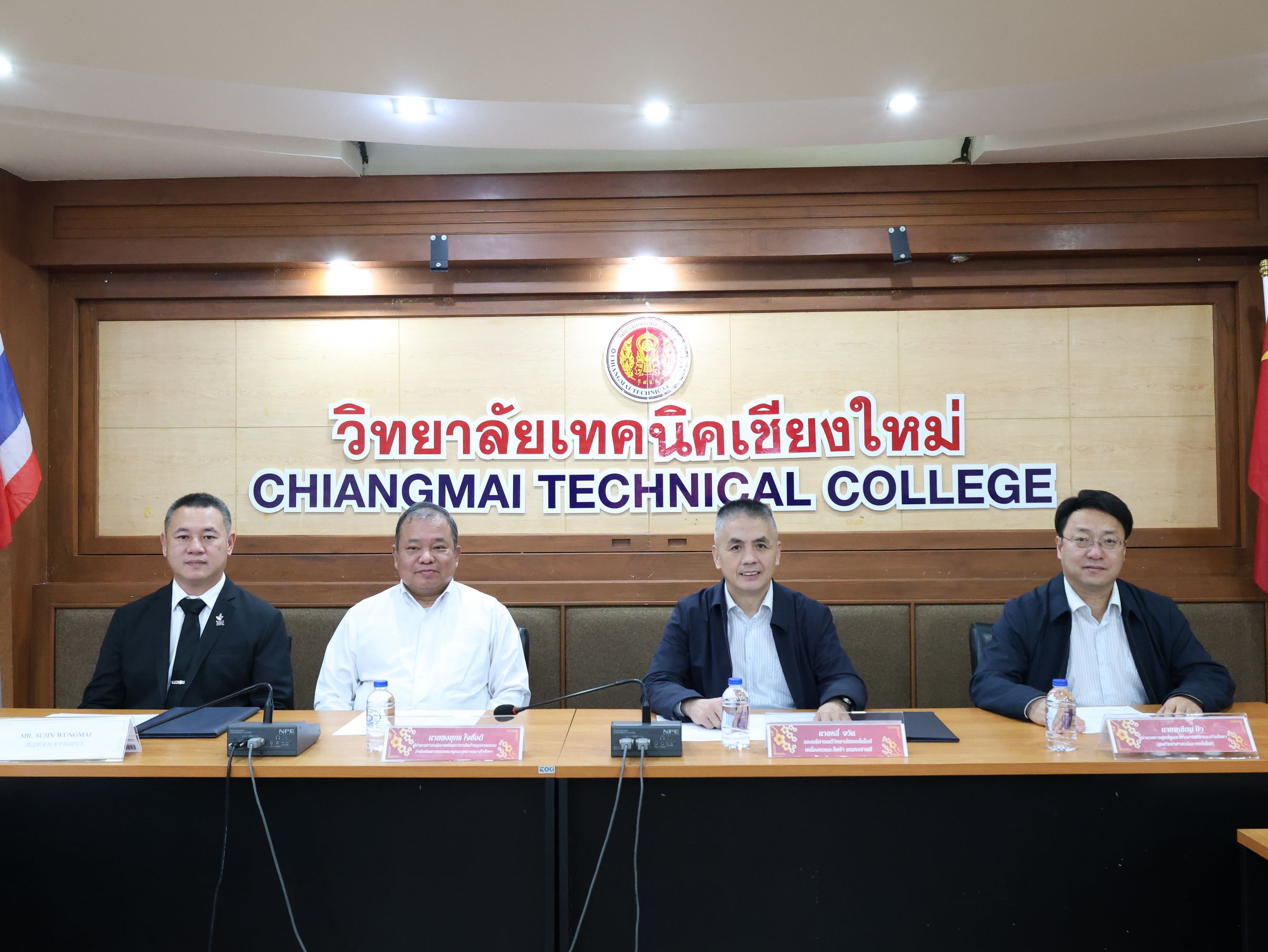 วันพฤหัสบดีที่ 19 มีนาคม พ.ศ. 2569 ดร.วัชรพงศ์ ฝั้นติ๊บ ผู้อำนวยการวิทยาลัยเทคนิคเชียงใหม่ ปฏิบัติหน้าที่ผู้อำนวยการสำนักงานอาชีวศึกษาจังหวัดเชียงใหม่ และรักษาการในตำแหน่งที่ปรึกษาด้านนโยบายและแผน สำนักงานคณะกรรมการการอาชีวศึกษา มอบหมายให้คณะผู้บริหาร นำโดยนายสุจินต์ วังใหม่ รองผู้อำนวยการฝ่ายวิชาการ นางศศิกาญจน์ เรือนศาสตร์ รองผู้อำนวยการฝ่ายพัฒนากิจการนักเรียน นักศึกษา นายชัยวัฒน์ พอพิน หัวหน้างานพัฒนาหลักสูตรการเรียนการสอน พร้อมด้วยหัวหน้าแผนกวิชาที่เกี่ยวข้อง และงานศูนย์ภาษาและวัฒนธรรมจีน ร่วมให้การต้อนรับคณะผู้บริหารจากสำนักพัฒนาสมรรถนะครูและบุคลากรอาชีวศึกษา สถาบันการอาชีวศึกษาภาคเหนือ 1 รวมถึงผู้บริหารจากวิทยาลัยเทคโนโลยีเครื่องกลและไฟฟ้า มณฑลชานซี และสถานประกอบการจากสาธารณรัฐประชาชนจีน ในโอกาสเดินทางมาเยี่ยมเยือนและศึกษาดูงาน ณ วิทยาลัยเทคนิคเชียงใหม่