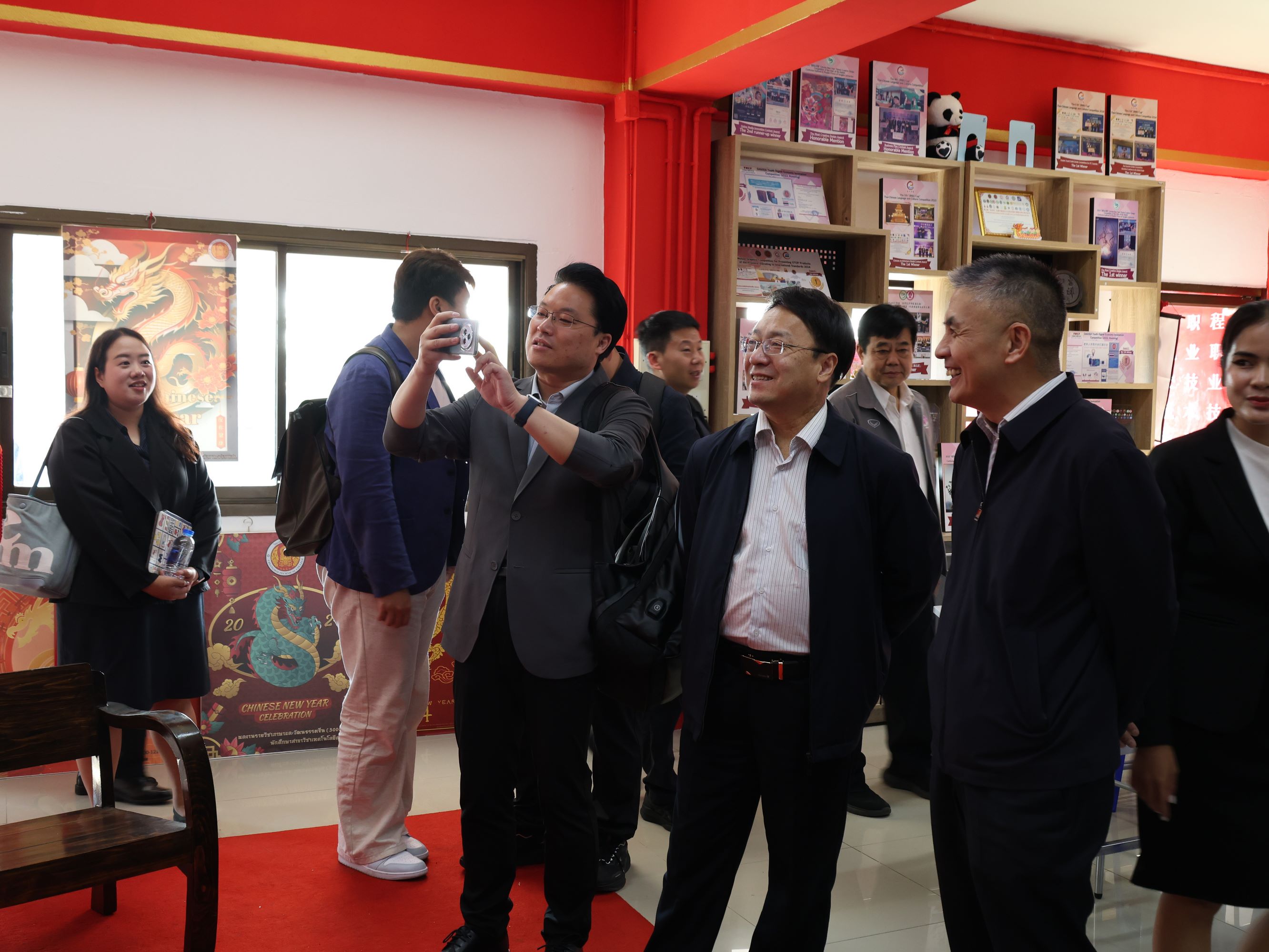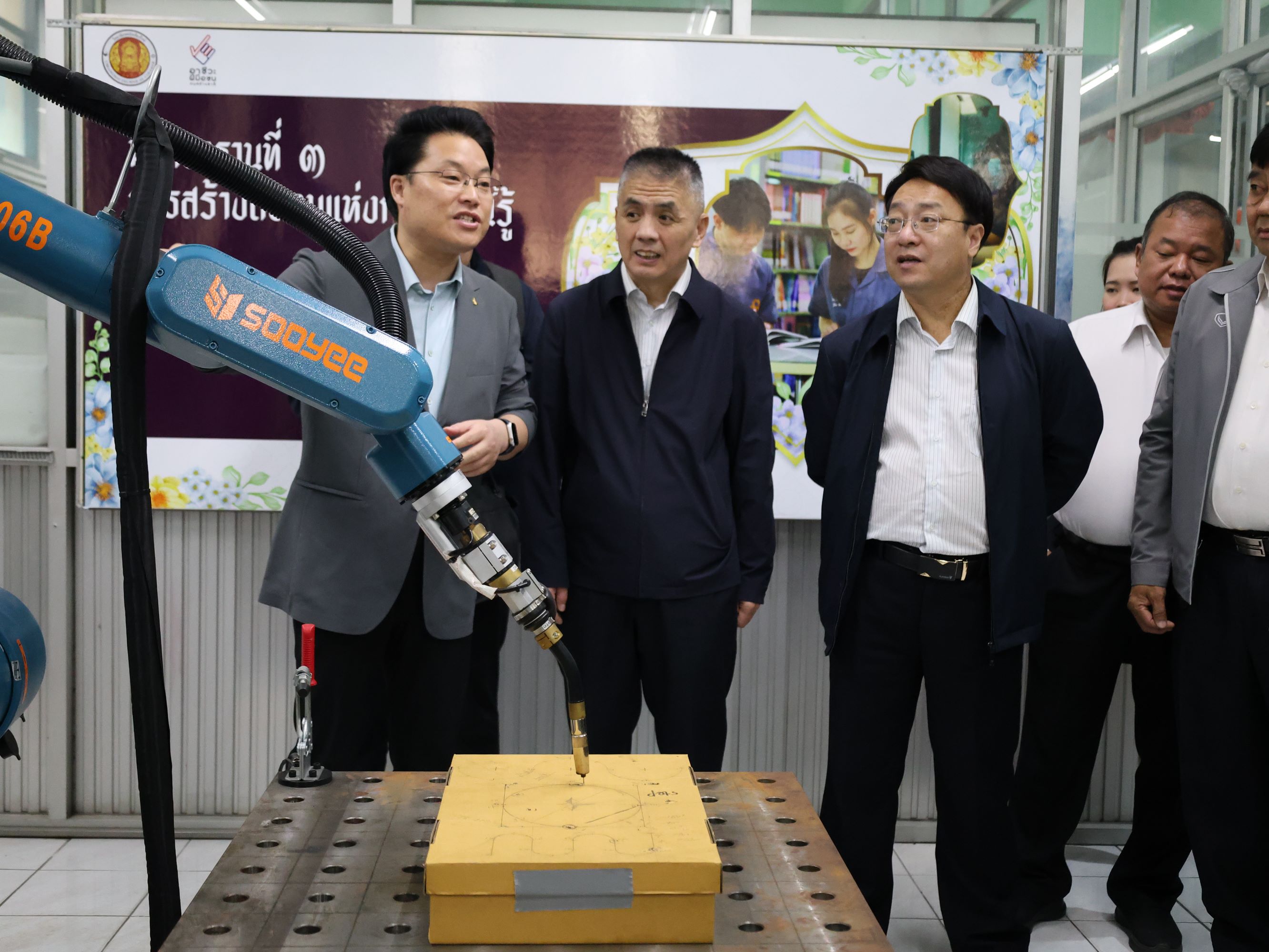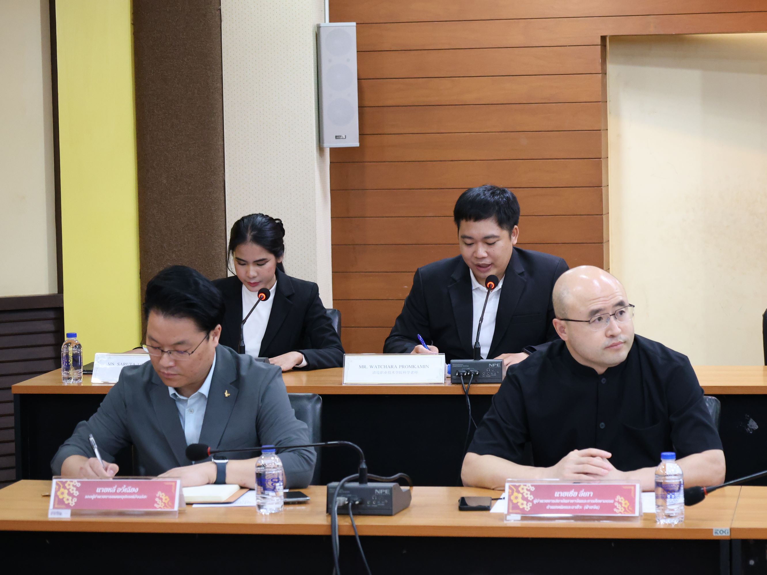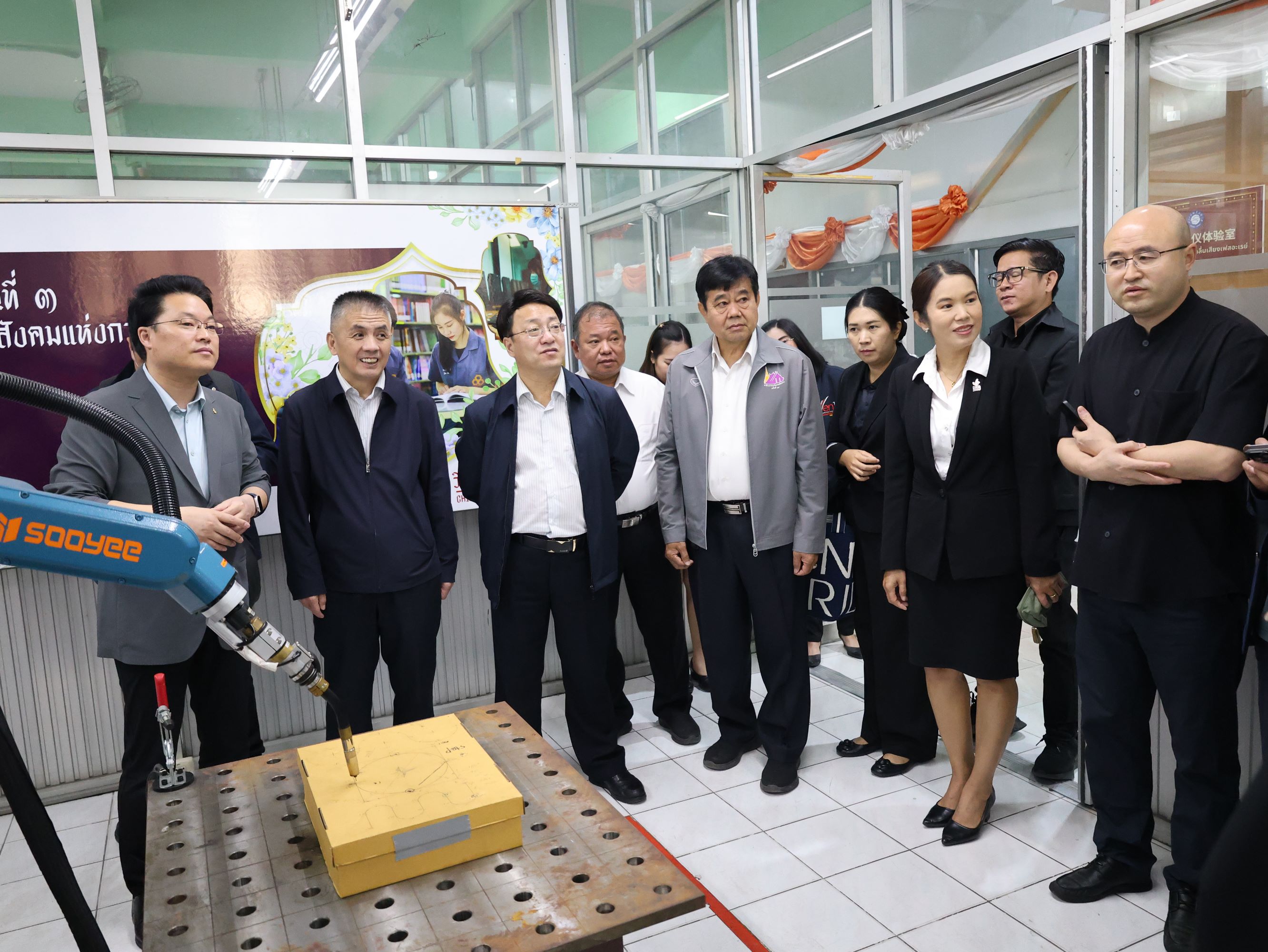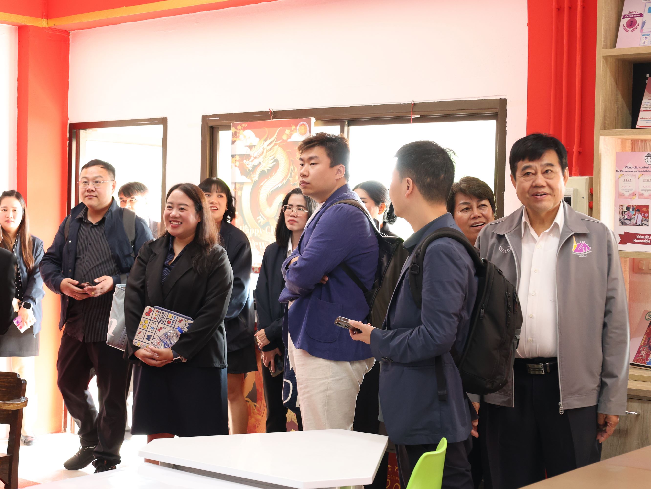 คณะผู้มาเยือนนำโดย ท่านหลี่ จวิน รองอธิการบดี ท่านเหยียน ปัว ผู้อำนวยการศูนย์บูรณาการการผลิตและการศึกษา ท่านหลี่ อวี้เฉียง รองผู้อำนวยการแผนกอุปกรณ์อัจฉริยะ ท่านเซี่ย ลี่เกา ผู้อำนวยการสถาบันภาษาจีนและการศึกษาอบรมด้านเทคนิคและอาชีวศึกษา ท่านอู๋ ชิ่ง ผู้จัดการประจำภูมิภาค บริษัท หย่าหลง อัจฉริยะอุปกรณ์ กรุ๊ป จำกัด ท่านสิง เต๋อหย่ง ผู้จัดการฝ่ายสรรหาบุคลากร และท่านโจว เซิงเซวียน ผู้จัดการฝ่ายพันธมิตรธุรกิจทรัพยากรบุคคล บริษัท ไฮเซนส์บรอดแบนด์