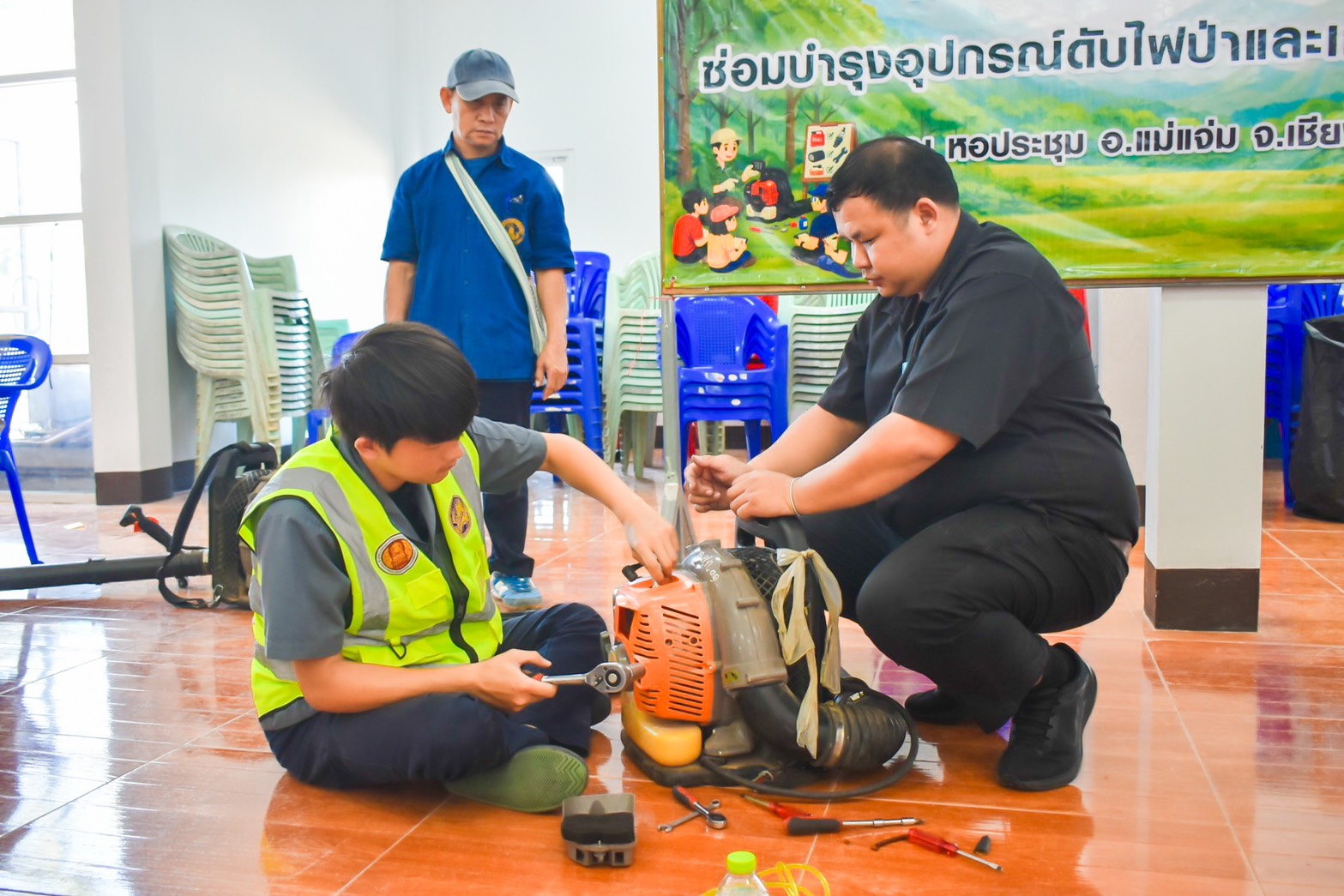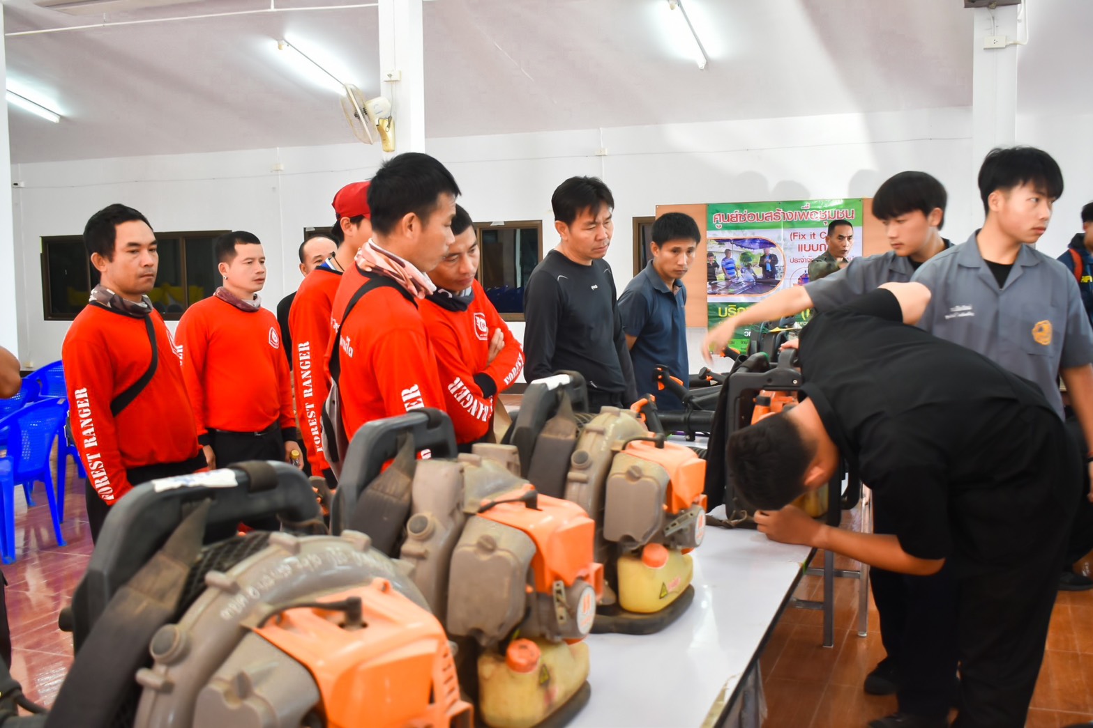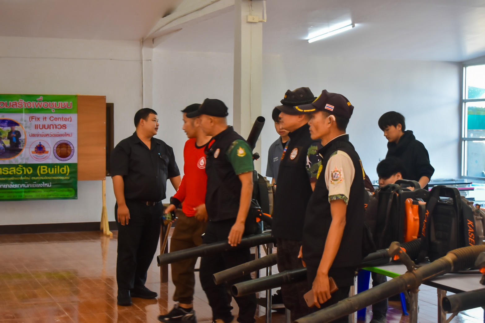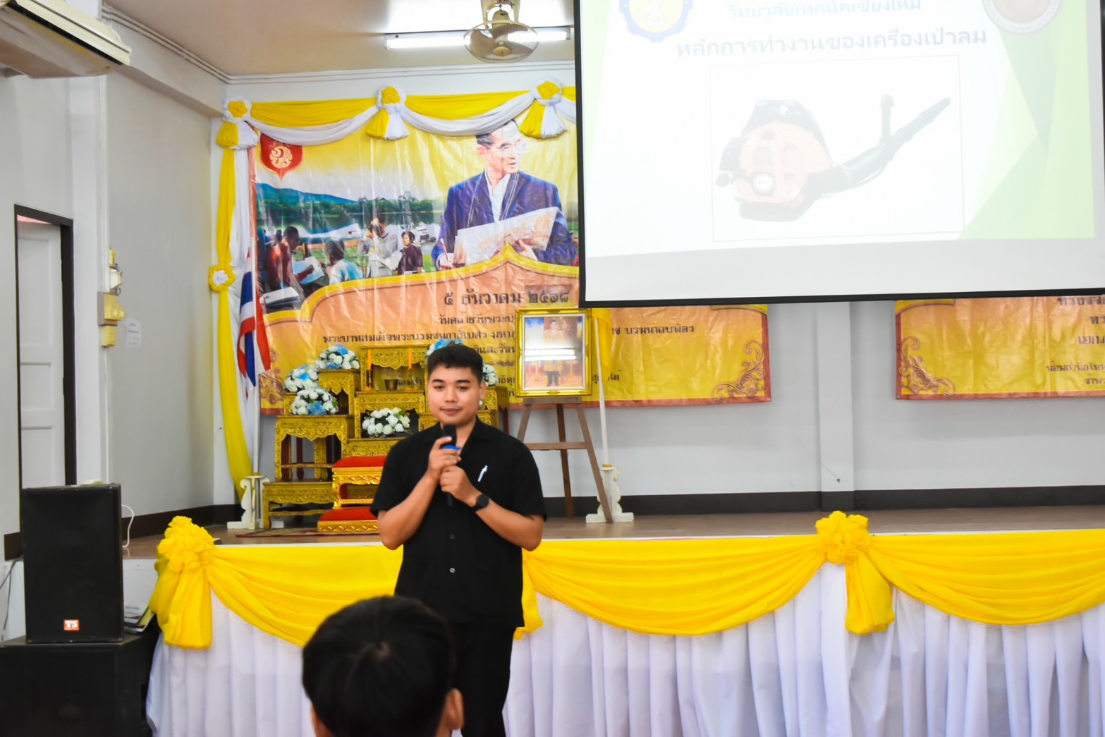 ดร.วัชรพงศ์ ฝั้นติ๊บ ผู้อำนวยการวิทยาลัยเทคนิคเชียงใหม่ ปฏิบัติหน้าที่ผู้อำนวยการสำนักงานอาชีวศึกษาจังหวัดเชียงใหม่ และรักษาการในตำแหน่งที่ปรึกษาด้านนโยบายและแผน สำนักงานคณะกรรมการการอาชีวศึกษา มอบหมายให้คณะครูแผนกวิชาช่างยนต์ และนักศึกษาเข้าร่วม การอบรมเชิงปฎบัติการการซ่อมบำรุงอุปกรณ์เครื่องดับไฟป่าและเครื่องเป่าใบไม้ ณ อำเภอแม่แจ่ม จังหวัดเชียงใหม่ โดยมีนายเกรียงศักดิ์ บุญตาปวนนายอำเภอแม่แจ่ม เป็นประธานเปิดงานการอบรม และมีนายรังสรรค์ พุทธวงศ์ ผู้จัดการทั่วไปด้านการพัฒนาความยั่งยืน เครือเจริญโภคภัณฑ์ และส่วนราชการประชาชนเข้าร่วมรับการอบรมในครั้งนี้ มีความร่วมมือของหน่วยงานจากแผนกวิชาช่างยนต์ วิทยาลัยเทคนิคเชียงใหม่ เป็นผู้ให้ความรู้และทักษะการซ่อมบำรุงเครื่องเป่าใบไม้ อุปกรณ์ดับไฟป่า ให้กับชุมชน อาสาดับไฟป่า เจ้าหน้าที่และภาคีเครือข่ายในพื้นที่ และมีมลูนิธิเจริญโภคภัณฑ์ให้การสนุนการอบรมร่วมกับ สำนักงานทรัพยากรธรรมชาติและสิ่งแวดล้อมจังหวัดเชียงใหม่และ บริษัทซีพีให้ความร่วมมือ มีเครื่องเป่าลมทั้งหมดจำนวน 30 เครื่อง สามารถซ่อมบำรุ่งให้ใช้งานได้ปกติ 28 เครื่อง รอการเปลี่ยนอะไหล่ 2 เครื่อง จากการอบรมได้รับคำชื่นชมจากท่านนายอำเภอแม่แจ่ม รวมถึงผู้เข้าร่วมอบรมเป็นอย่างมาก