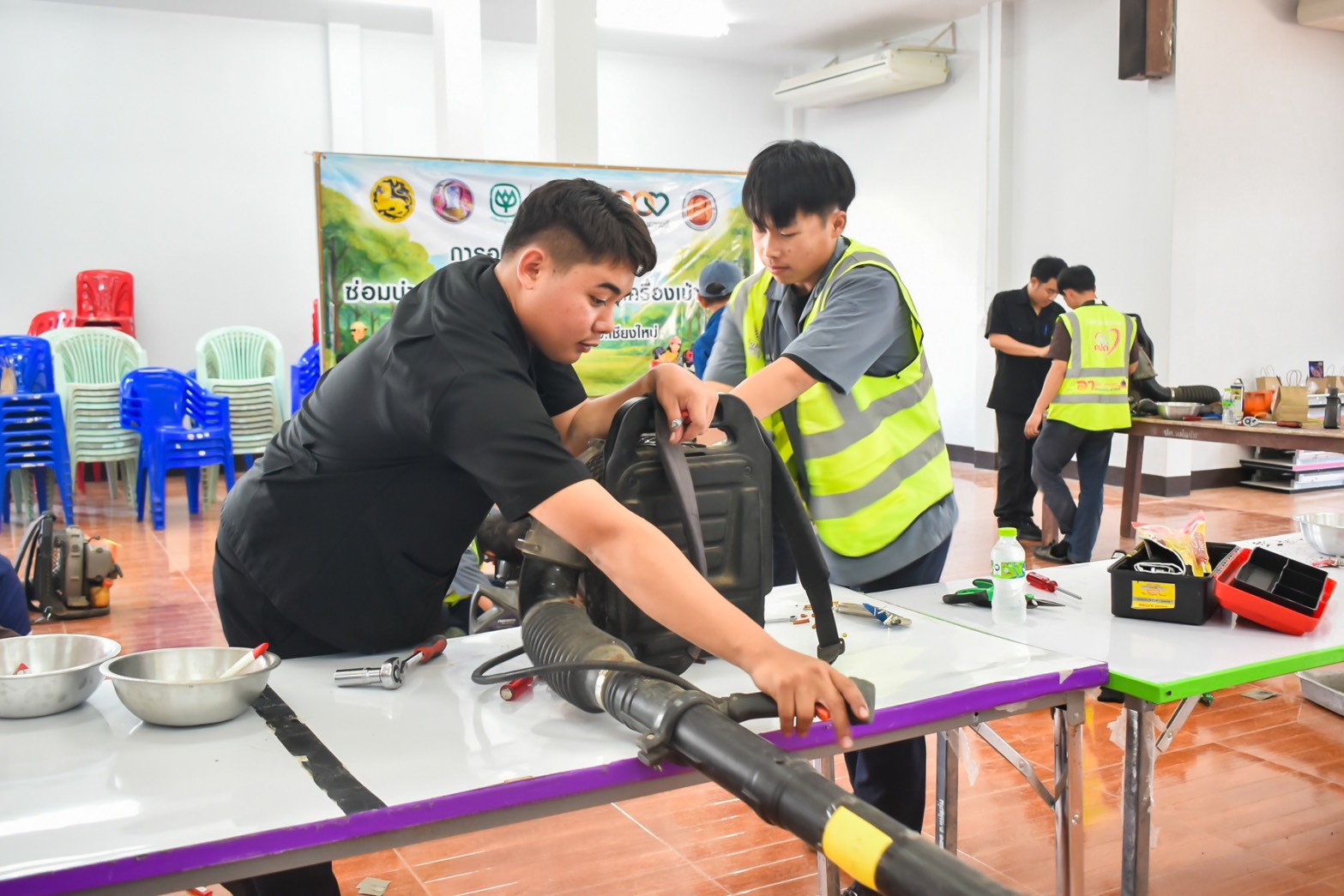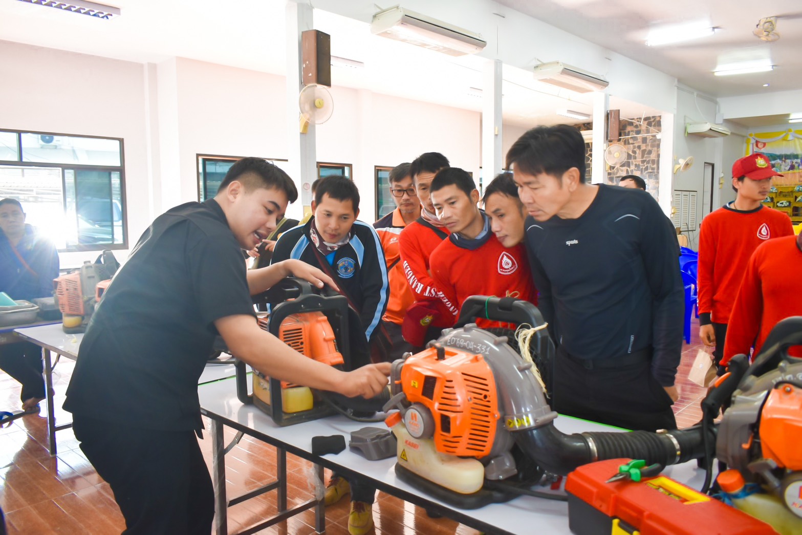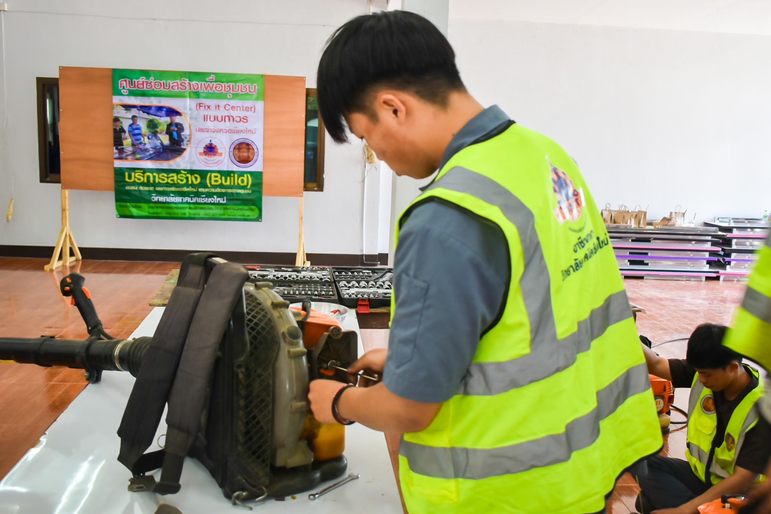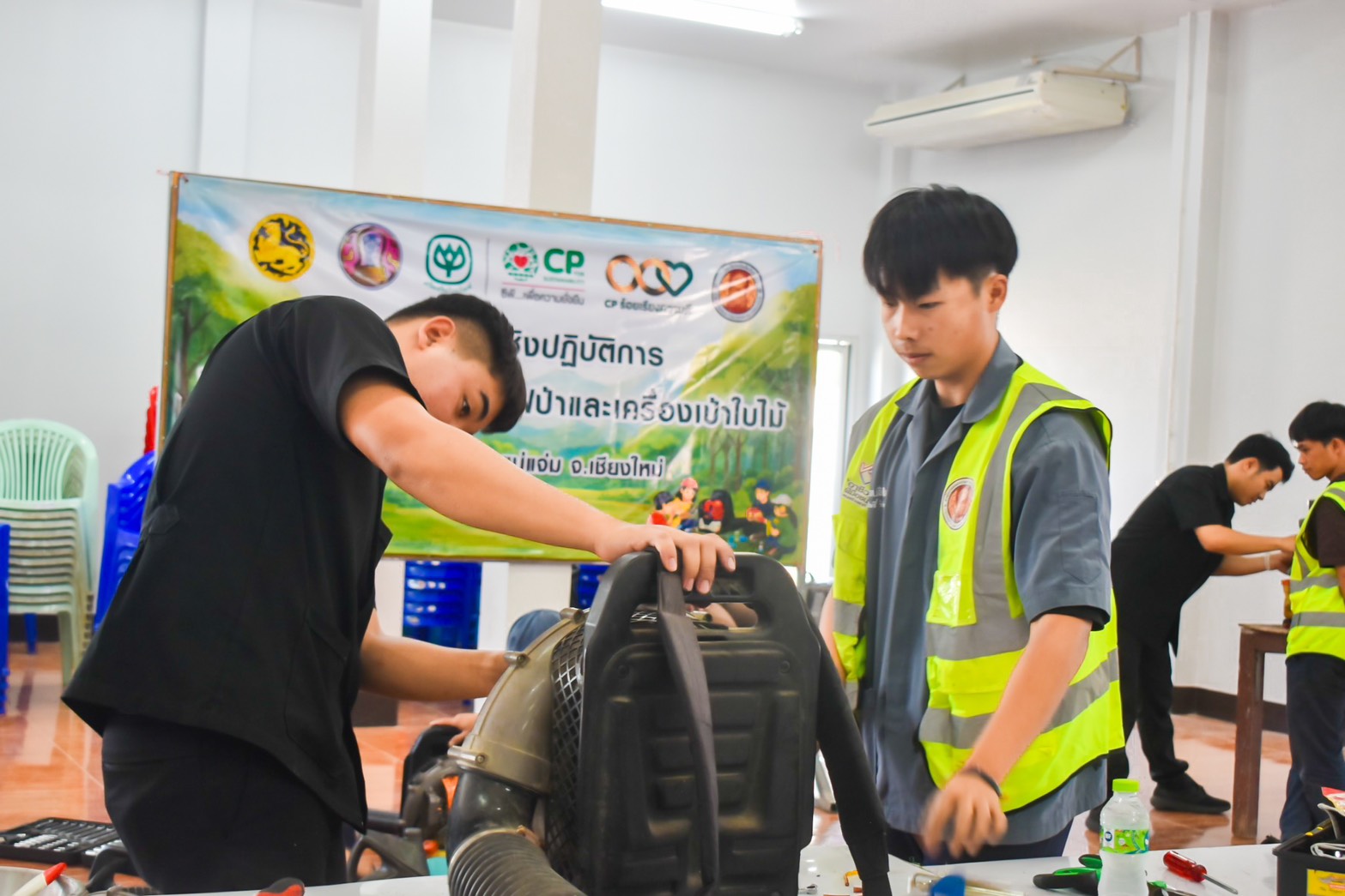 ดร.วัชรพงศ์ ฝั้นติ๊บ ผู้อำนวยการวิทยาลัยเทคนิคเชียงใหม่ ปฏิบัติหน้าที่ผู้อำนวยการสำนักงานอาชีวศึกษาจังหวัดเชียงใหม่ และรักษาการในตำแหน่งที่ปรึกษาด้านนโยบายและแผน สำนักงานคณะกรรมการการอาชีวศึกษา มอบหมายให้คณะครูแผนกวิชาช่างยนต์ และนักศึกษาเข้าร่วม การอบรมเชิงปฎบัติการการซ่อมบำรุงอุปกรณ์เครื่องดับไฟป่าและเครื่องเป่าใบไม้ ณ อำเภอแม่แจ่ม จังหวัดเชียงใหม่ โดยมีนายเกรียงศักดิ์ บุญตาปวนนายอำเภอแม่แจ่ม เป็นประธานเปิดงานการอบรม และมีนายรังสรรค์ พุทธวงศ์ ผู้จัดการทั่วไปด้านการพัฒนาความยั่งยืน เครือเจริญโภคภัณฑ์ และส่วนราชการประชาชนเข้าร่วมรับการอบรมในครั้งนี้ มีความร่วมมือของหน่วยงานจากแผนกวิชาช่างยนต์ วิทยาลัยเทคนิคเชียงใหม่ เป็นผู้ให้ความรู้และทักษะการซ่อมบำรุงเครื่องเป่าใบไม้ อุปกรณ์ดับไฟป่า ให้กับชุมชน อาสาดับไฟป่า เจ้าหน้าที่และภาคีเครือข่ายในพื้นที่ และมีมลูนิธิเจริญโภคภัณฑ์ให้การสนุนการอบรมร่วมกับ สำนักงานทรัพยากรธรรมชาติและสิ่งแวดล้อมจังหวัดเชียงใหม่และ บริษัทซีพีให้ความร่วมมือ มีเครื่องเป่าลมทั้งหมดจำนวน 30 เครื่อง สามารถซ่อมบำรุ่งให้ใช้งานได้ปกติ 28 เครื่อง รอการเปลี่ยนอะไหล่ 2 เครื่อง จากการอบรมได้รับคำชื่นชมจากท่านนายอำเภอแม่แจ่ม รวมถึงผู้เข้าร่วมอบรมเป็นอย่างมาก