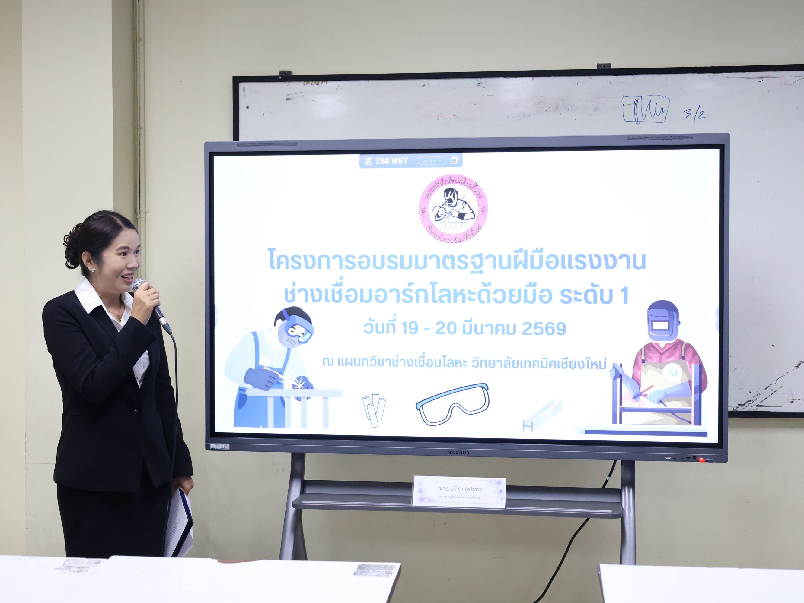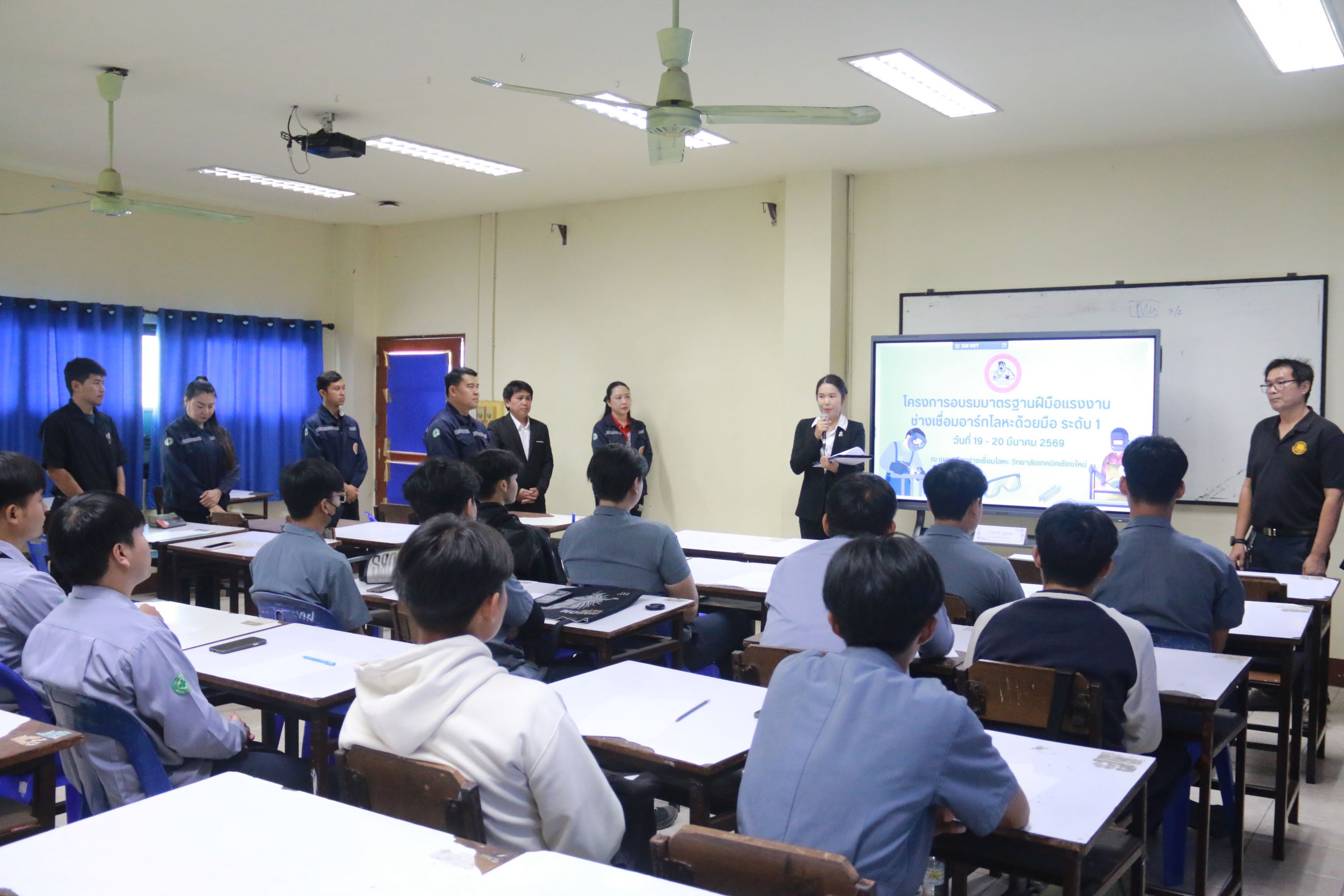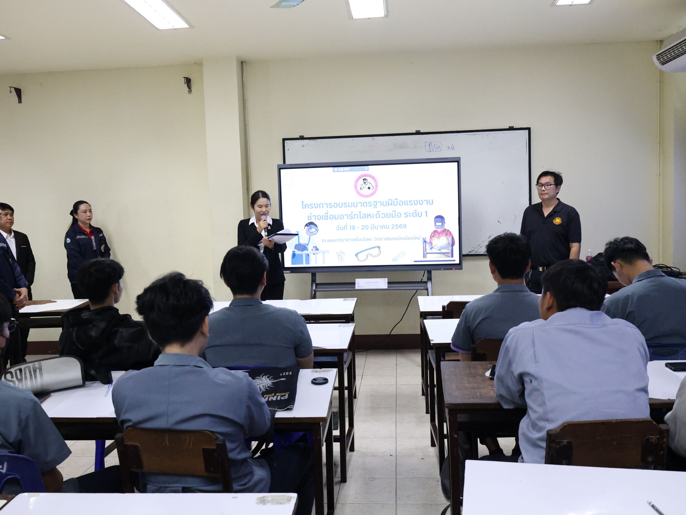 ดร.วัชรพงศ์ ฝั้นติ๊บ ผู้อำนวยการวิทยาลัยเทคนิคเชียงใหม่ ปฏิบัติหน้าที่ผู้อำนวยการสำนักงานอาชีวศึกษาจังหวัดเชียงใหม่ และรักษาการในตำแหน่งที่ปรึกษาด้านนโยบายและแผน สำนักงานคณะกรรมการการอาชีวศึกษา มอบหมายให้ นางศศิกาญจน์ เรือนศาสตร์ รองผู้อำนวยการฝ่ายพัฒนากิจการนักเรียน นักศึกษา เป็นประธานในการเปิดโครงการฯ พร้อมด้วย นายราชันย์ พรมแก้วงาม หัวหน้าแผนกวิชาช่างเชื่อมโลหะ พร้อมด้วยคณะครูและนักศึกษาแผนกวิชาช่างเชื่อมโลหะ ให้การต้อนรับวิทยากรผู้ทรงคุณวุฒิ ได้แก่ นายปรีชา อุปะทะ จากสำนักงานพัฒนาฝีมือแรงงานลำพูน ซึ่งได้ให้เกียรติเป็นผู้ถ่ายทอดความรู้และประสบการณ์ ในโครงการอบรมและทดสอบมาตรฐานฝีมือแรงงาน สาขาช่างเชื่อมอาร์กโลหะด้วยมือ (SMAW) ระดับ 1 ระหว่างวันที่ 19 – 20 มีนาคม 2569