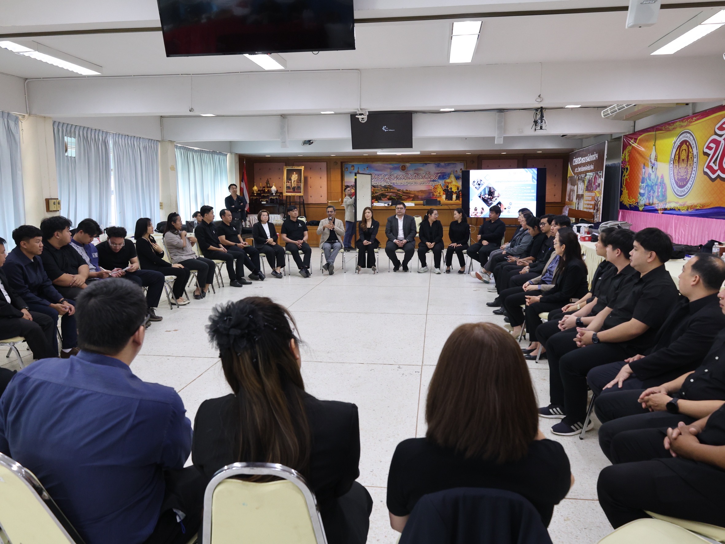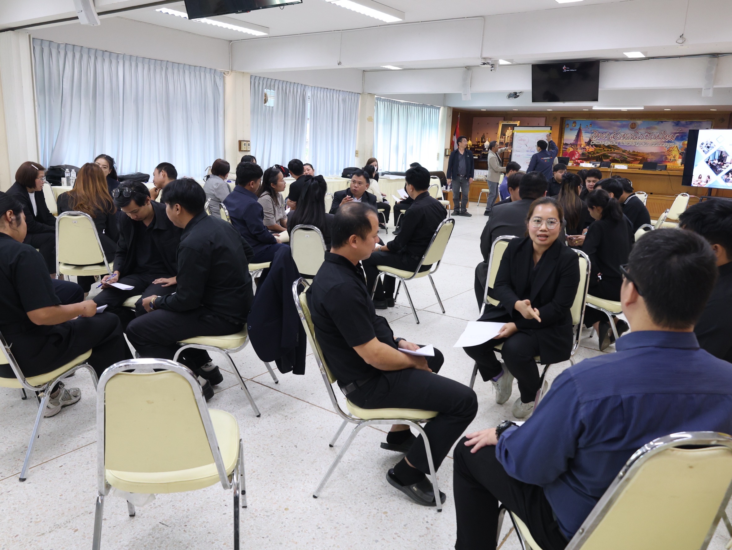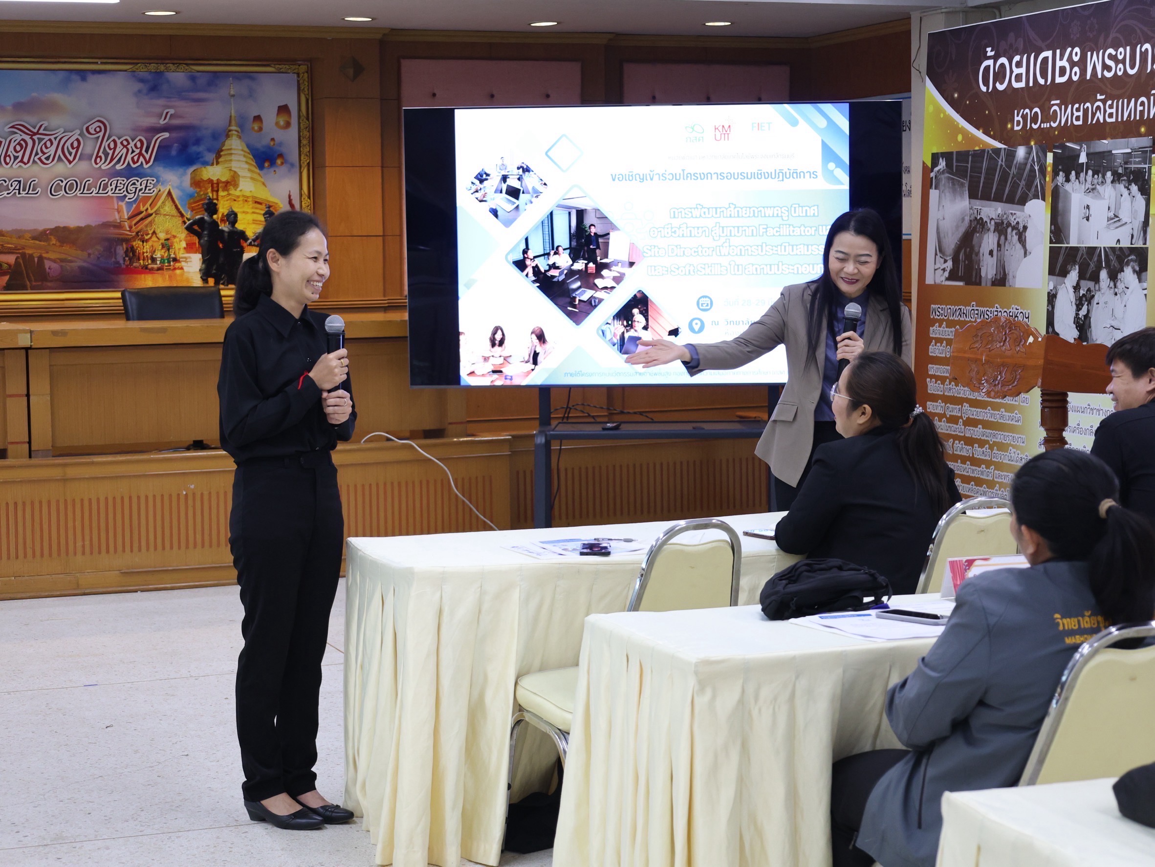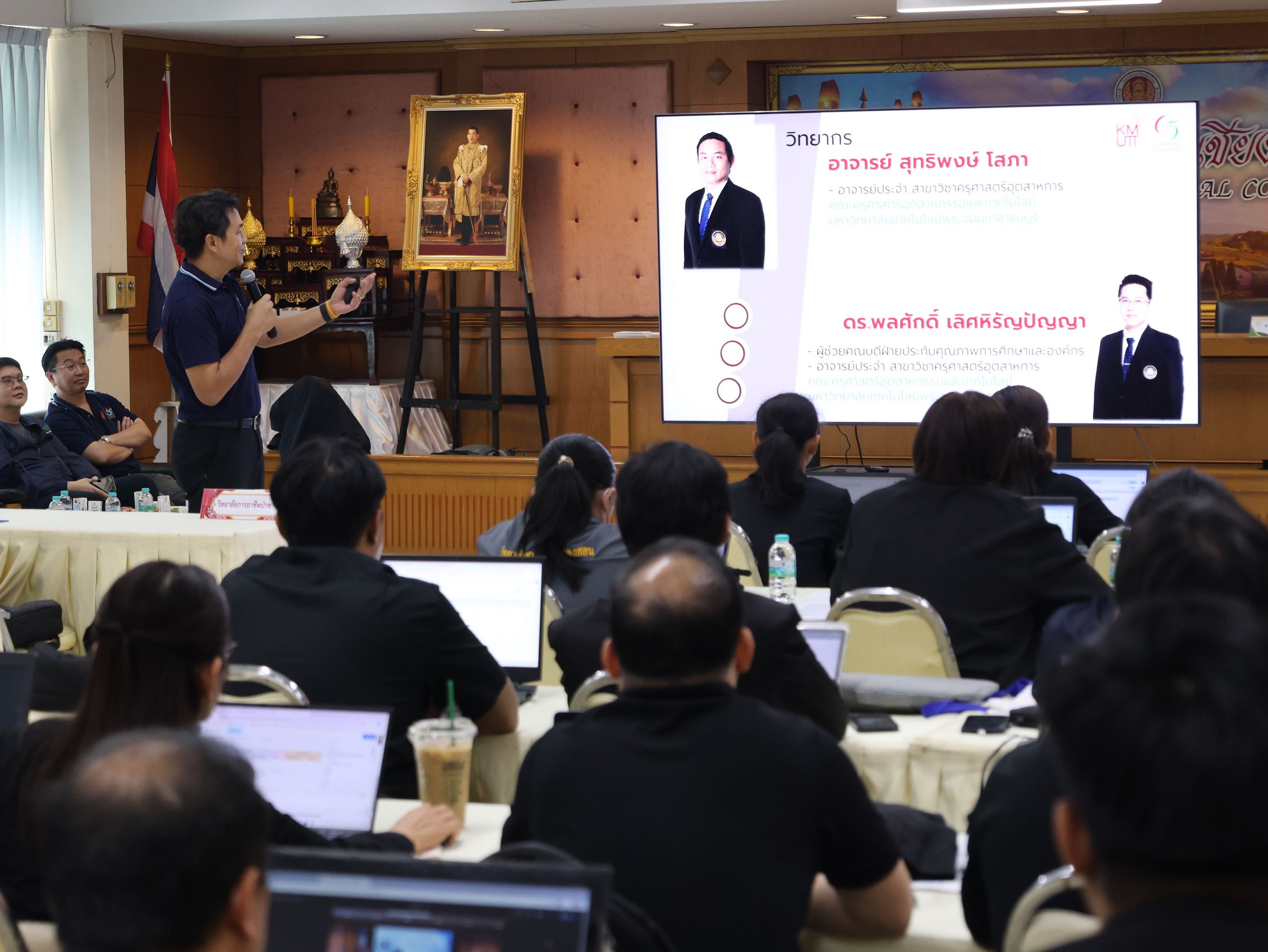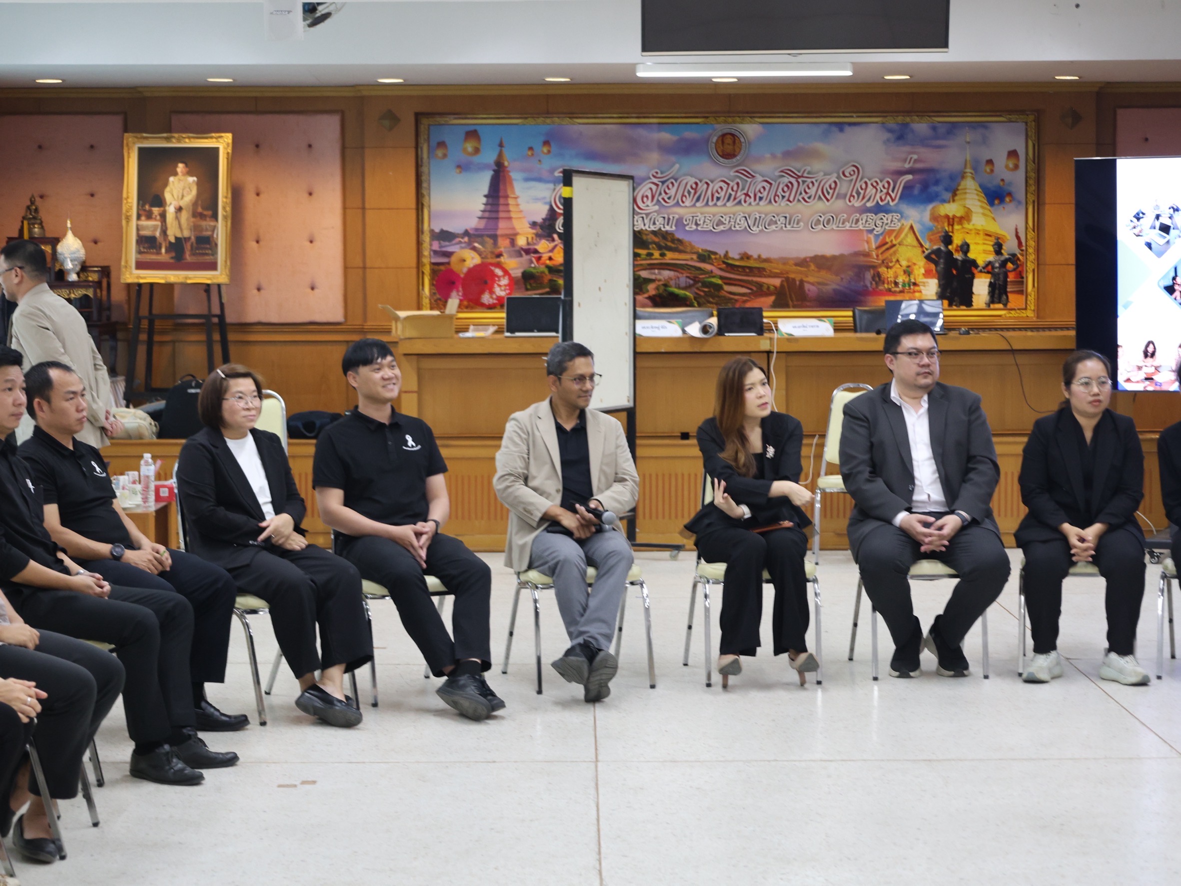 นางสาวปรียานุช คำเย็น ผู้ประสานงานโครงการ พร้อมคณะครูจากสถานศึกษาที่ได้รับทุนนวัตกรรมสายอาชีพชั้นสูง 12 แห่งในภาคเหนือ เข้าร่วมอบรม โดยได้รับเกียรติจาก ดร.สมภพ ปัญญาสมพรรค์ กล่าวต้อนรับ และคณะวิทยากรจากมหาวิทยาลัยเทคโนโลยีพระจอมเกล้าธนบุรีร่วมถ่ายทอดความรู้ตลอด 2 วัน