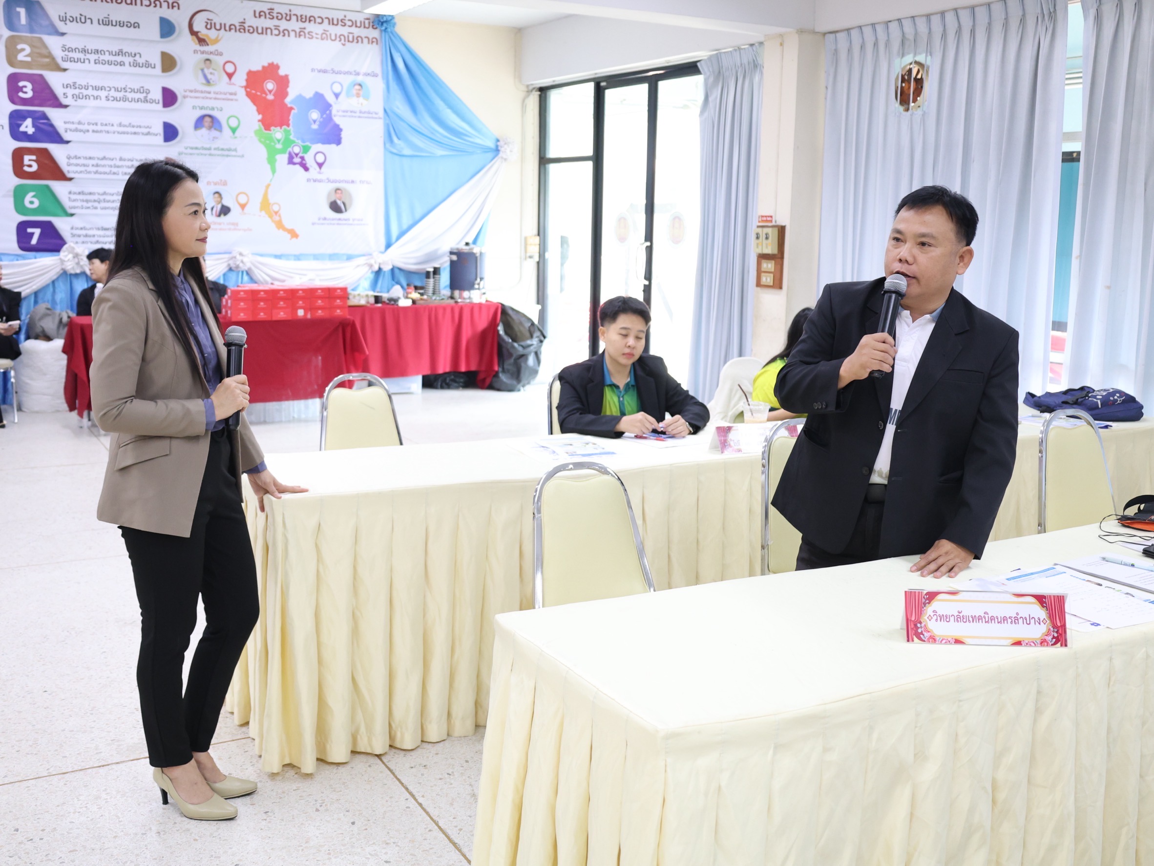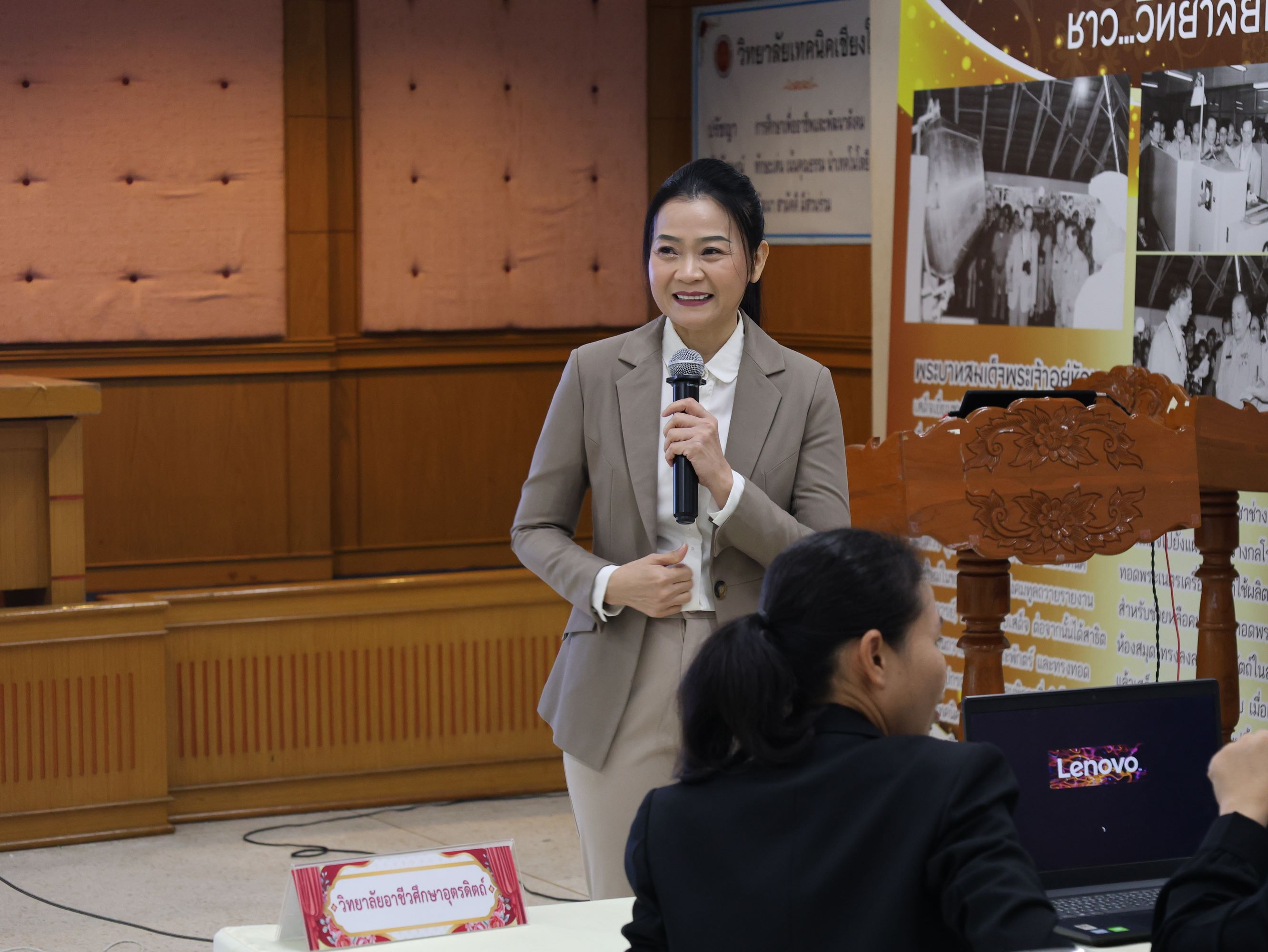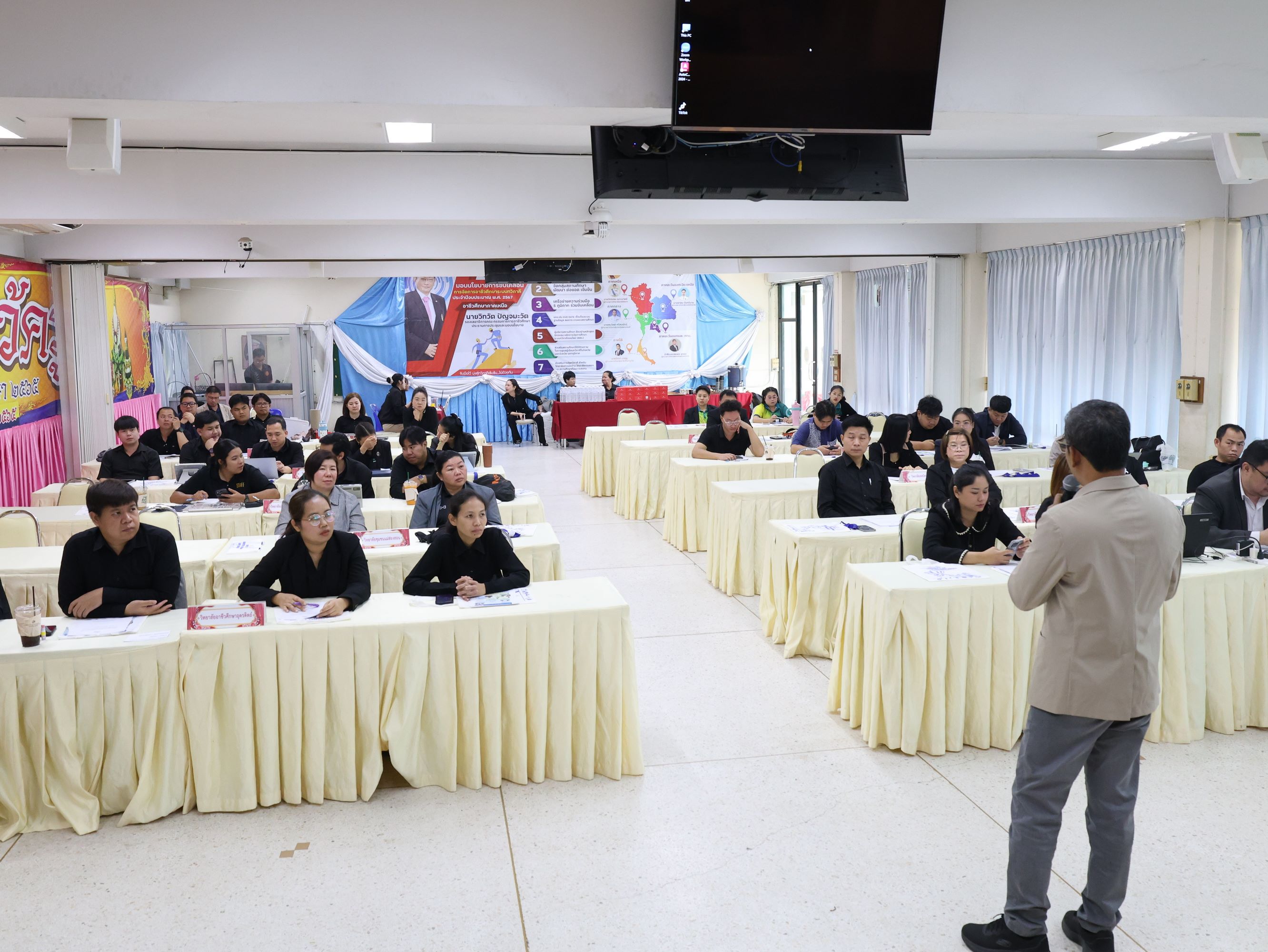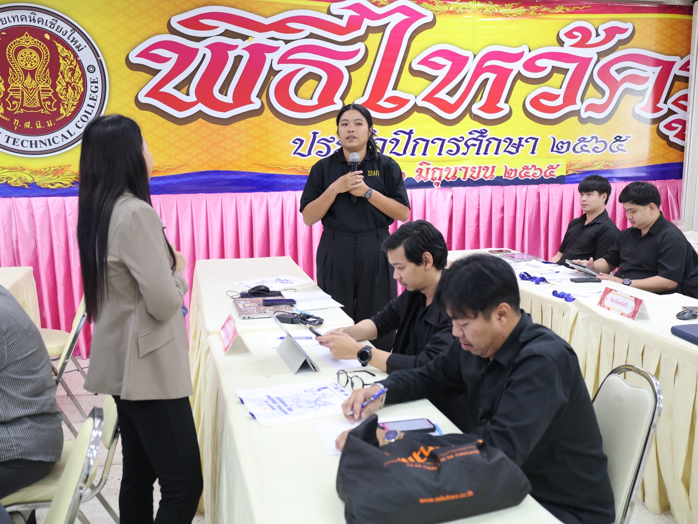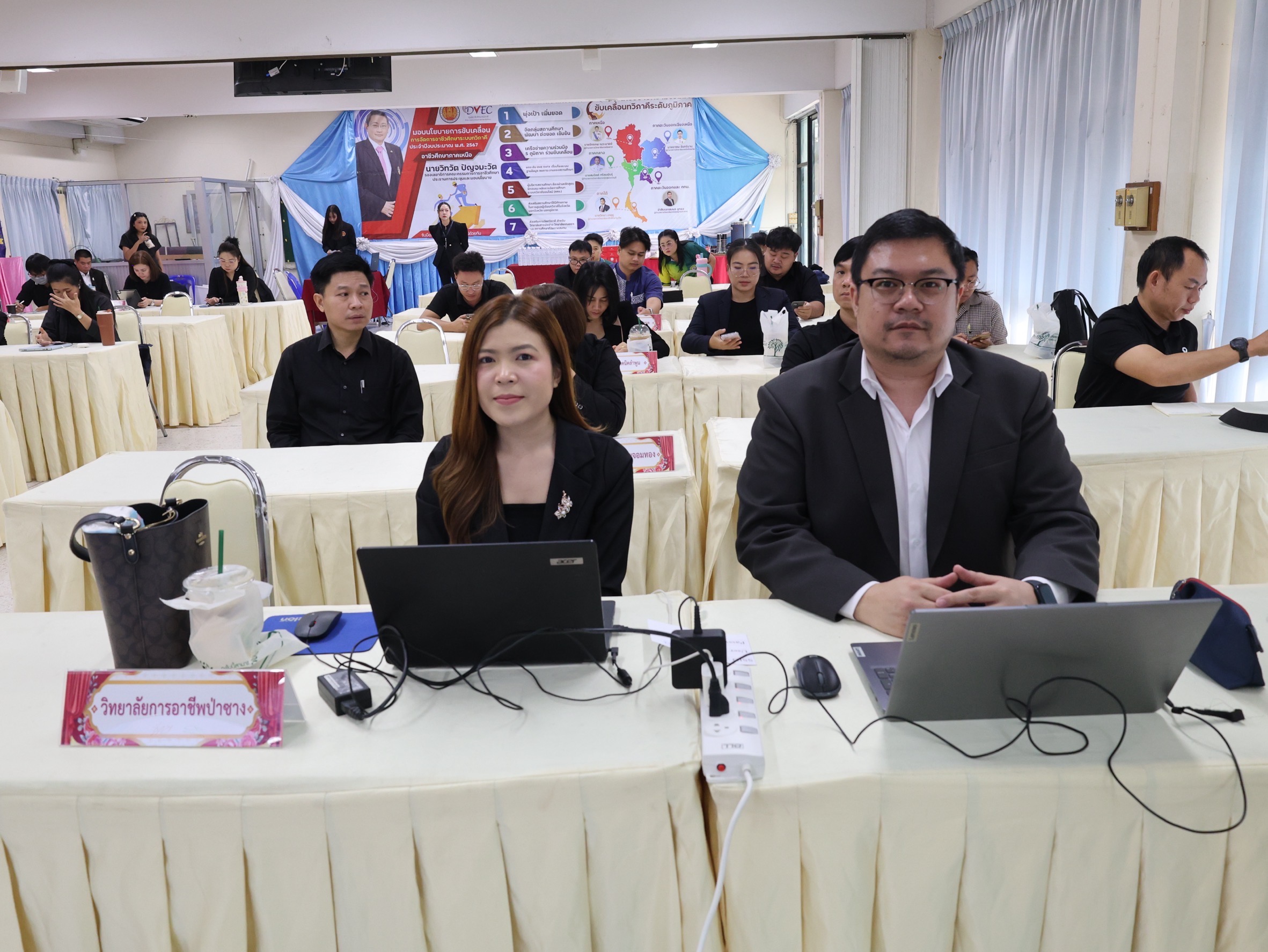 นางสาวปรียานุช คำเย็น ผู้ประสานงานโครงการ พร้อมคณะครูจากสถานศึกษาที่ได้รับทุนนวัตกรรมสายอาชีพชั้นสูง 12 แห่งในภาคเหนือ เข้าร่วมอบรม โดยได้รับเกียรติจาก ดร.สมภพ ปัญญาสมพรรค์ กล่าวต้อนรับ และคณะวิทยากรจากมหาวิทยาลัยเทคโนโลยีพระจอมเกล้าธนบุรีร่วมถ่ายทอดความรู้ตลอด 2 วัน