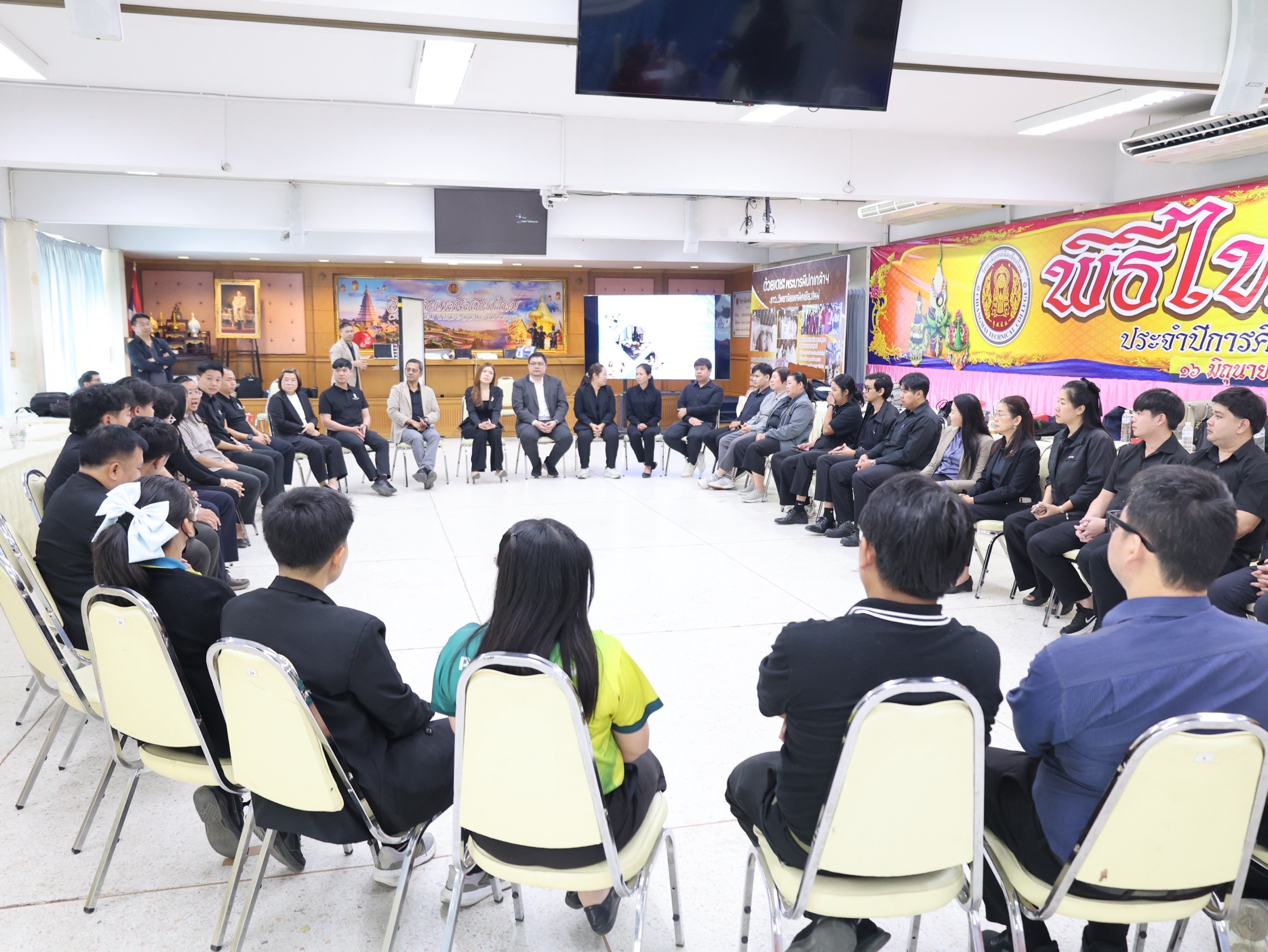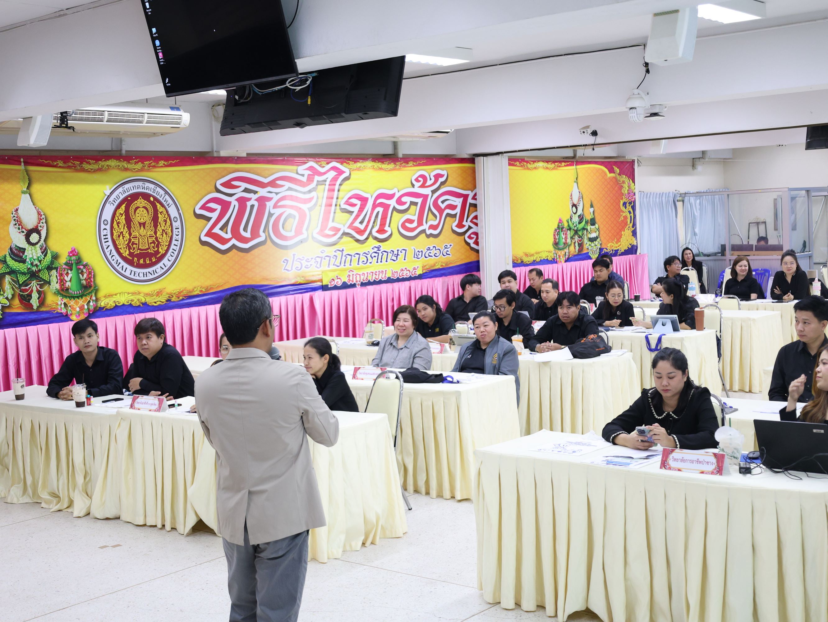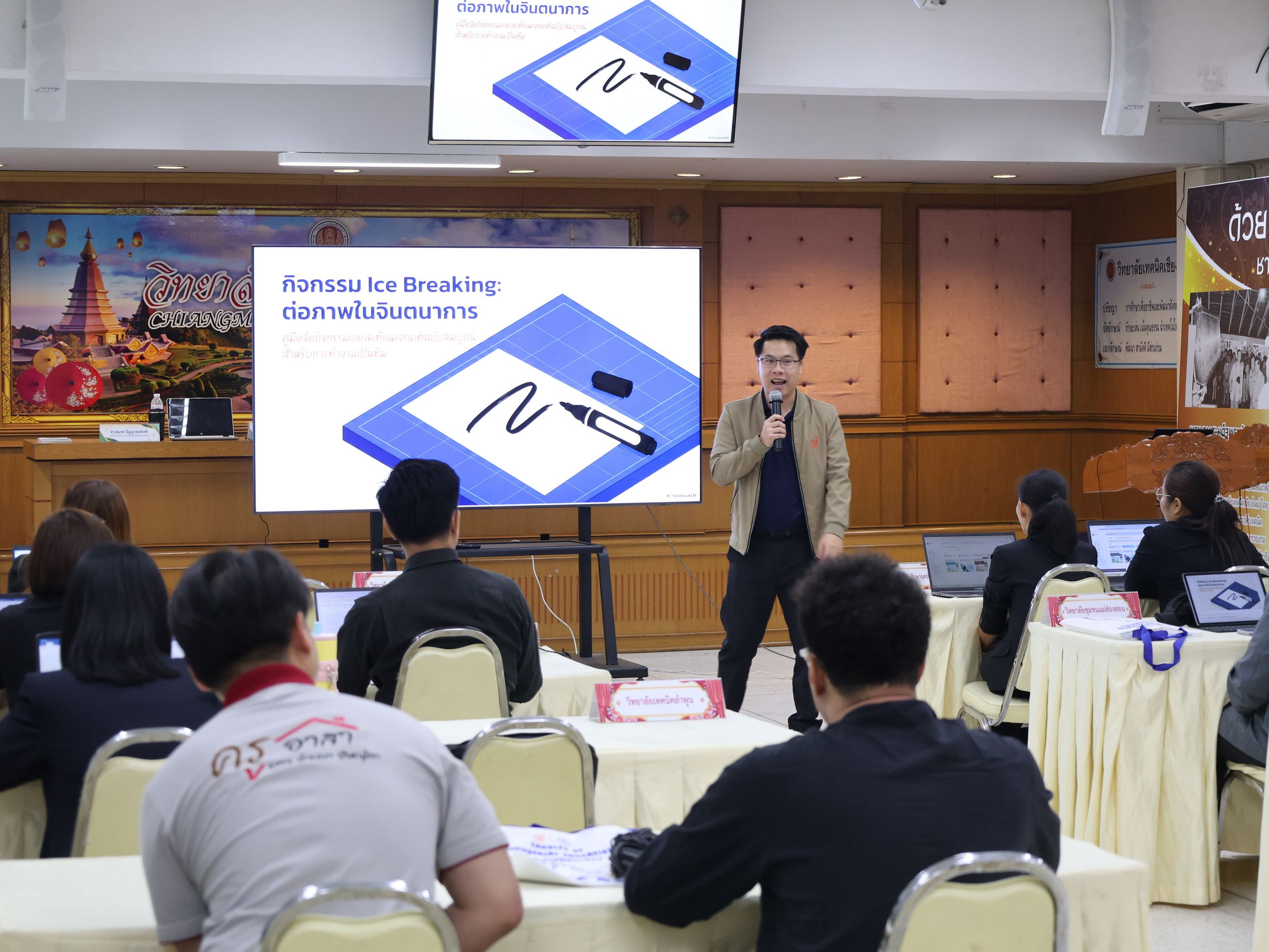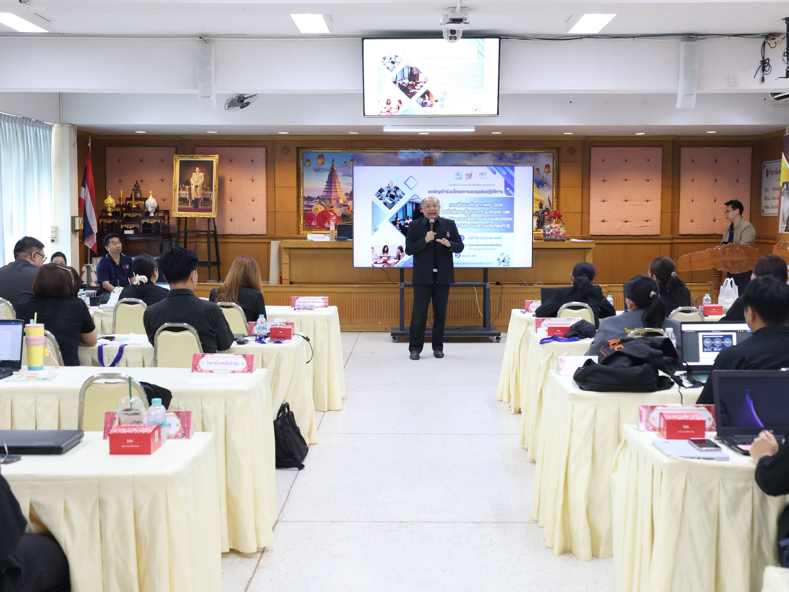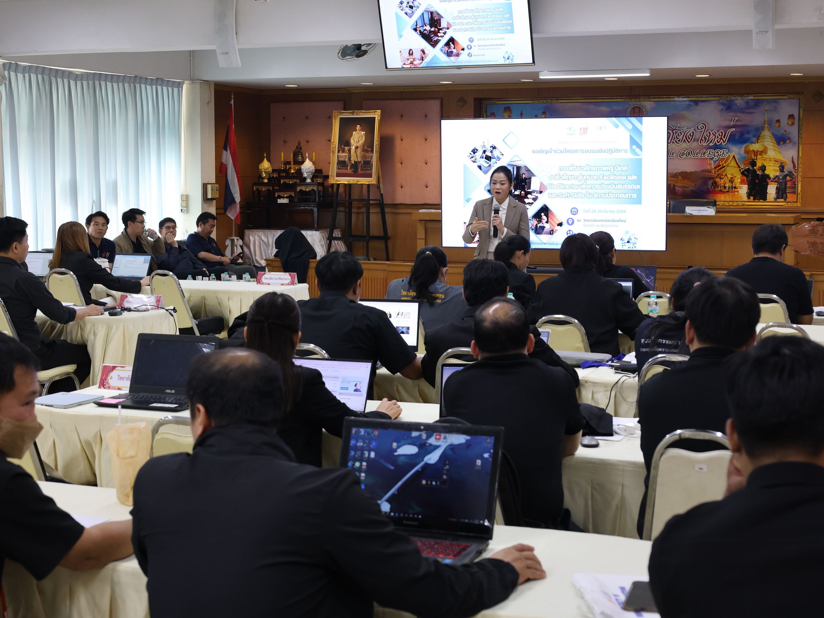 ดร.วัชรพงศ์ ฝั้นติ๊บ ผู้อำนวยการวิทยาลัยเทคนิคเชียงใหม่ ปฏิบัติหน้าที่ผู้อำนวยการสำนักงานอาชีวศึกษาจังหวัดเชียงใหม่ และรักษาการในตำแหน่งที่ปรึกษาด้านนโยบายและแผน สำนักงานคณะกรรมการการอาชีวศึกษา เป็นประธานในพิธีเปิดโครงการอบรมเชิงปฏิบัติการการพัฒนาศักยภาพครูนิเทศอาชีวศึกษา สู่บทบาท Facilitator และ Site Director เพื่อการประเมินสมรรถนะและ Soft Skills ในสถานประกอบการ ภายใต้โครงการทุนนวัตกรรมสายอาชีพชั้นสูง กองทุนเพื่อความเสมอภาคทางการศึกษา (กสศ.) ระหว่างวันที่ 28-29 มีนาคม 2569 ณ ห้องประชุมสุทธาธรรม วิทยาลัยเทคนิคเชียงใหม่