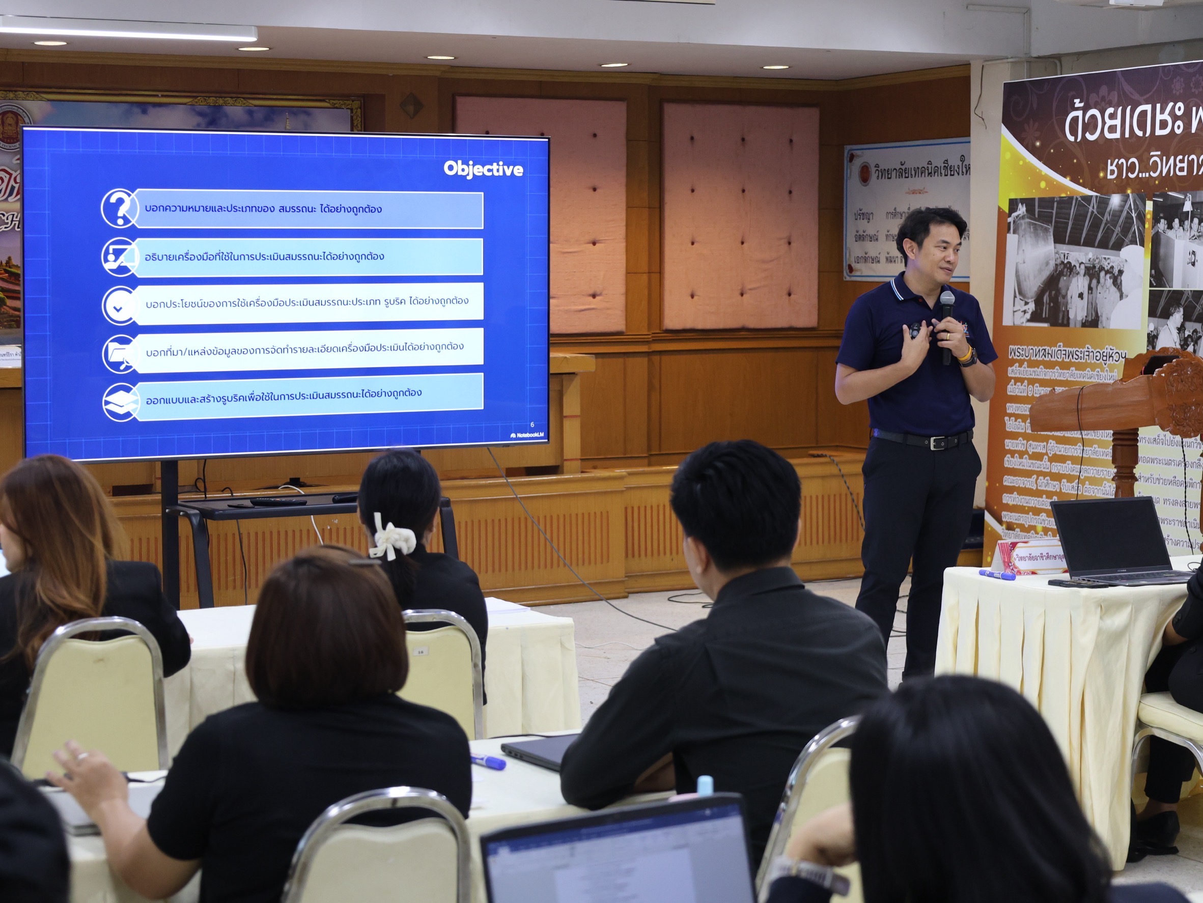 กิจกรรมประกอบด้วย การบรรยายและ workshop การออกแบบเครื่องมือประเมิน (Rubrics) การสร้างเครื่องมือวัดทั้ง Hard Skills และ Soft Skills การฝึก role play เพื่อให้ Constructive Feedback และการนำเสนอผลงาน (Pitching)