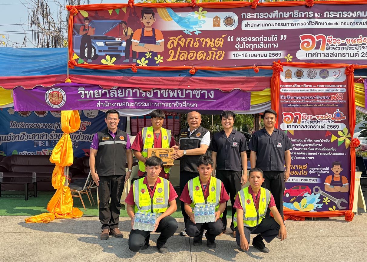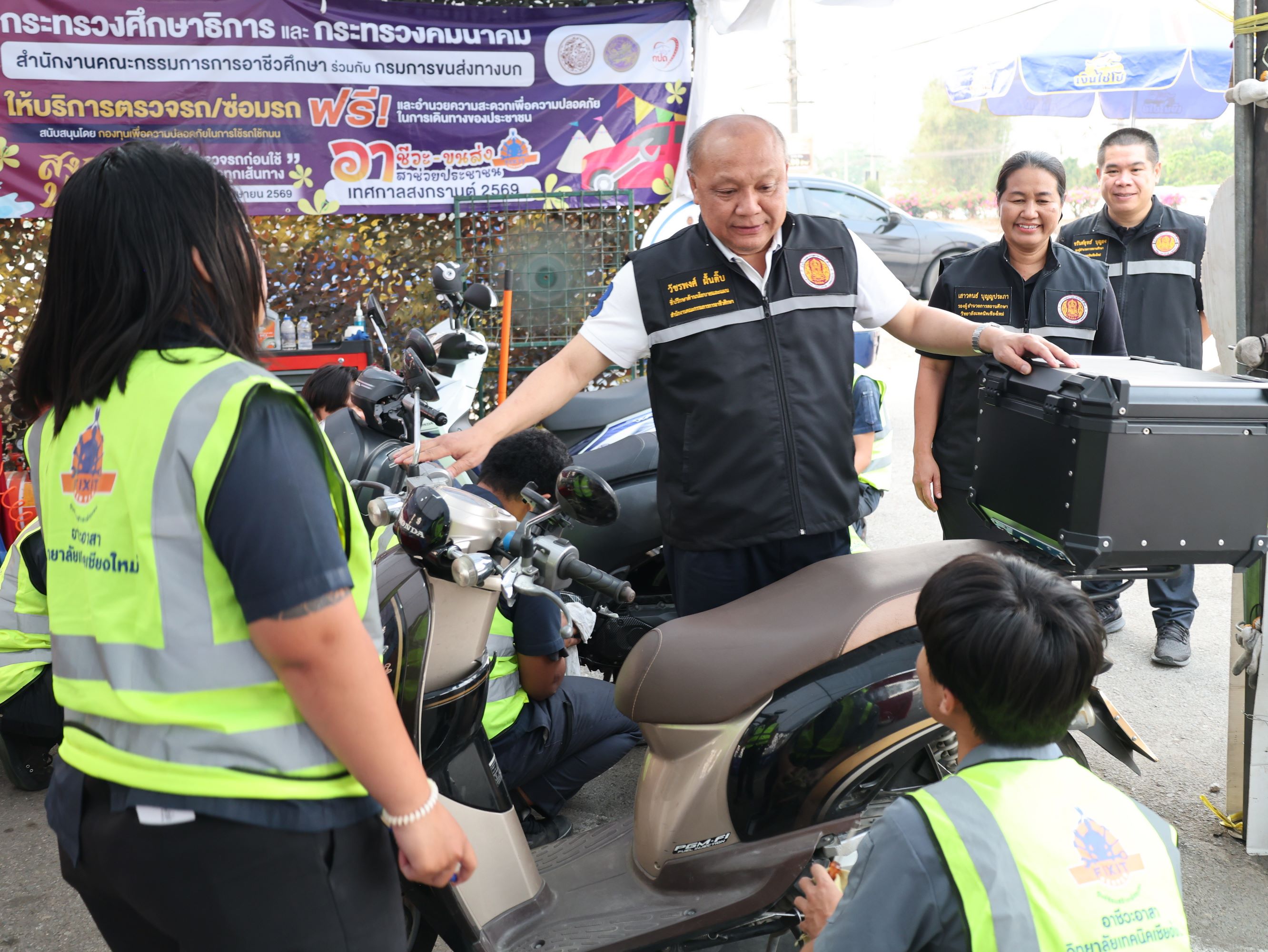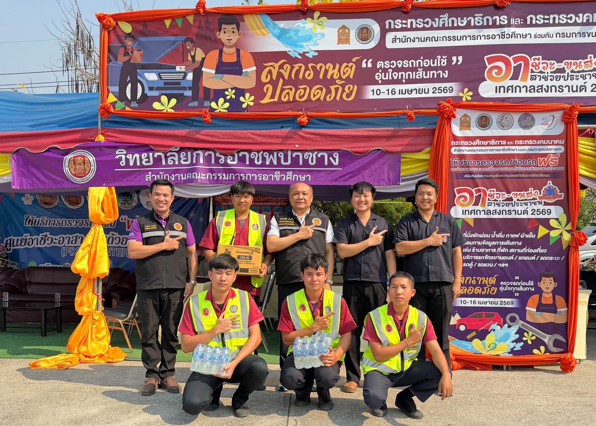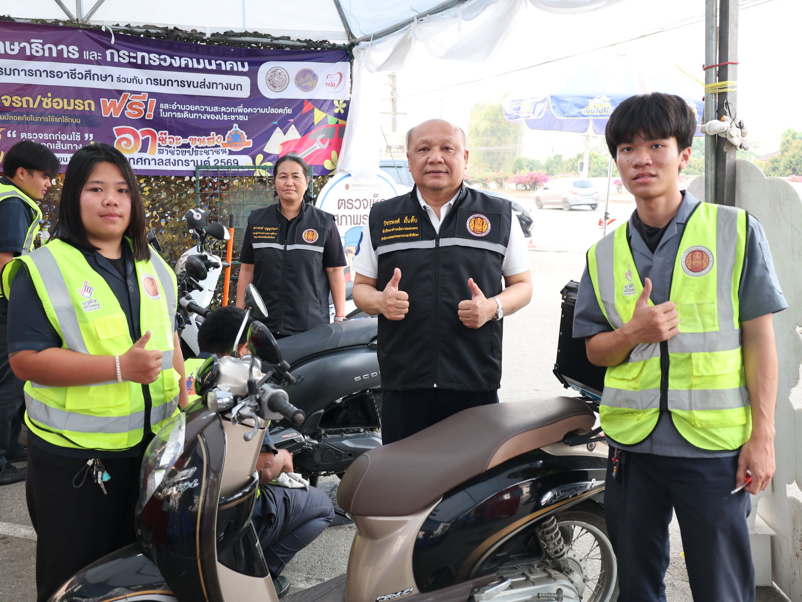 นายยศพล เวณุโกเศศ เลขาธิการคณะกรรมการการอาชีวศึกษา มอบหมายให้ ดร.วัชรพงศ์ ฝั้นติ๊บ ผู้อำนวยการวิทยาลัยเทคนิคเชียงใหม่ ปฏิบัติหน้าที่ผู้อำนวยการสำนักงานอาชีวศึกษาจังหวัดเชียงใหม่ และรักษาการในตำแหน่งที่ปรึกษาด้านนโยบายและแผน สำนักงานคณะกรรมการการอาชีวศึกษา ลงพื้นที่ตรวจเยี่ยมและให้กำลังใจ “ศูนย์อาชีวะ-ขนส่ง อาสาช่วยประชาชน” เทศกาลสงกรานต์ 2569 ในเขตพื้นที่ จังหวัดเชียงใหม่ และจังหวัดลำพูนพร้อมน้ำดื่มและน้ำมันหล่อลื่นเครื่องยนต์ เพื่อเป็นการสนับสนุนและให้กำลังใจแก่คณะผู้บริหาร คณะครู บุคลากร และนักเรียน นักศึกษา ที่ปฏิบัติหน้าที่ด้วยความมุ่งมั่น โดยมีการลงพื้นที่ ใน 4 จุดบริการ ดังนี้