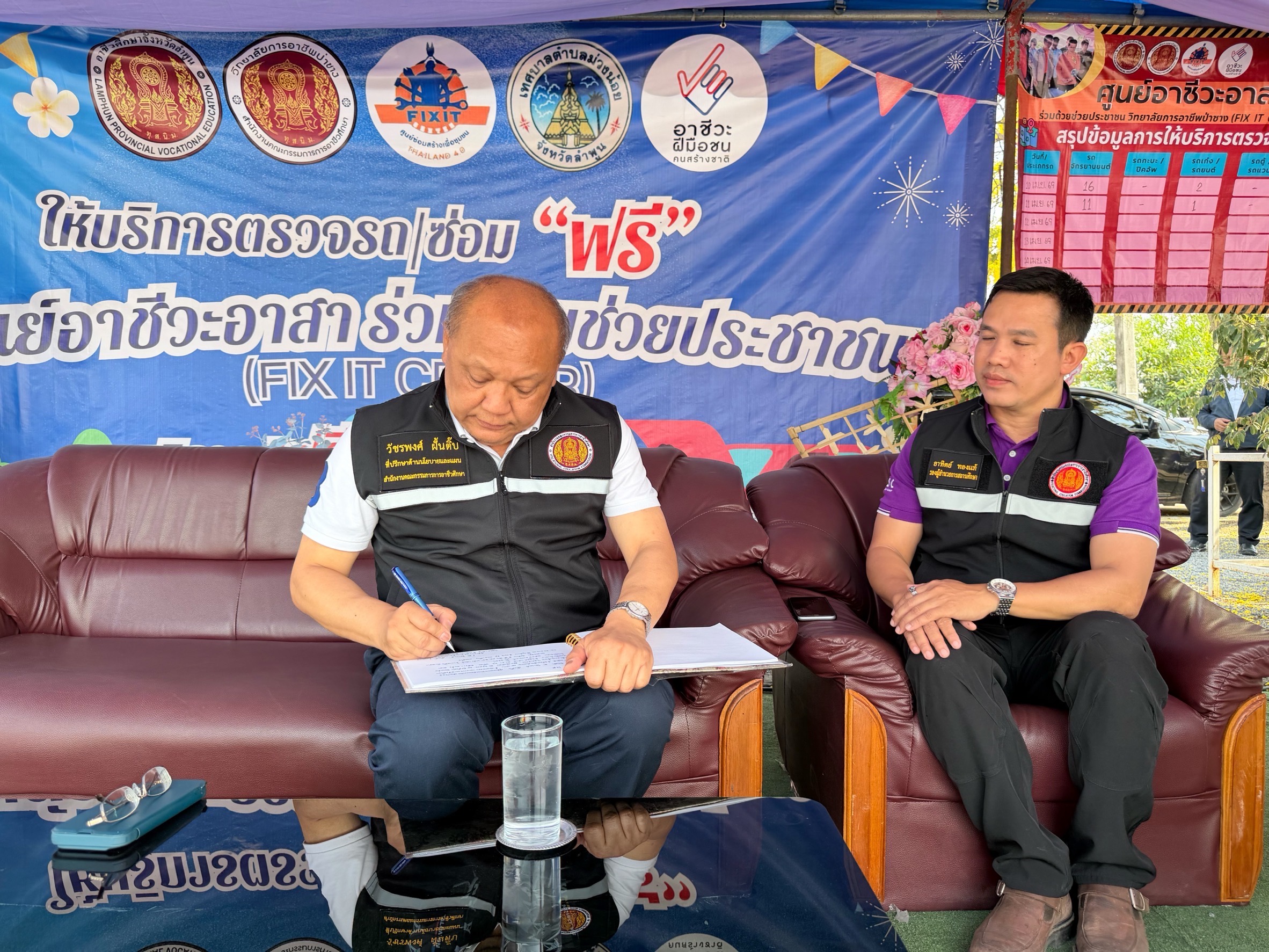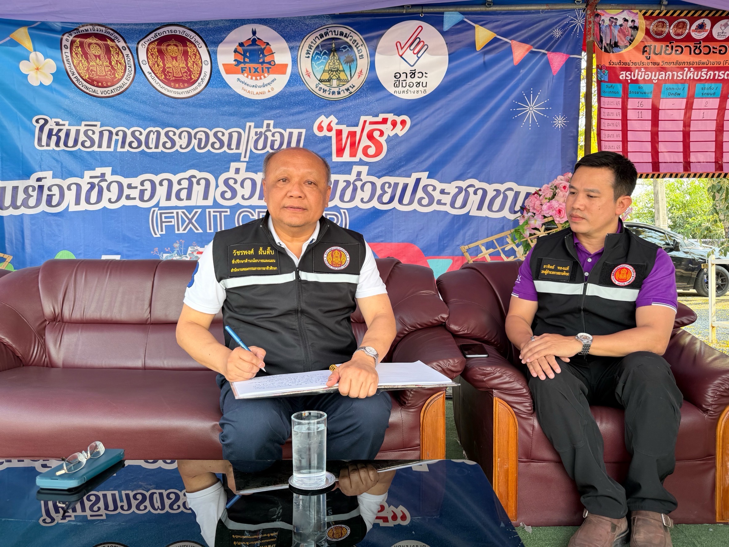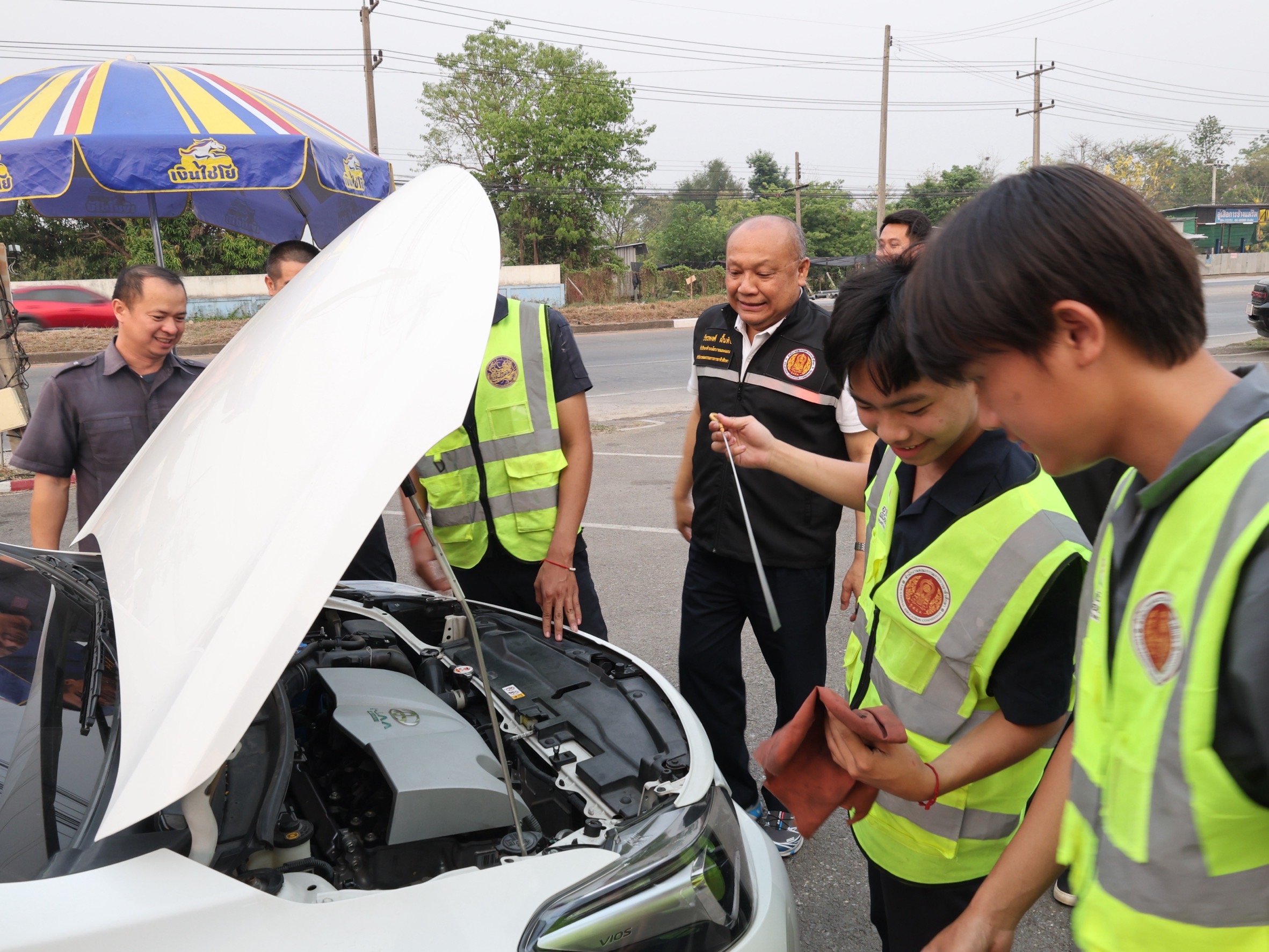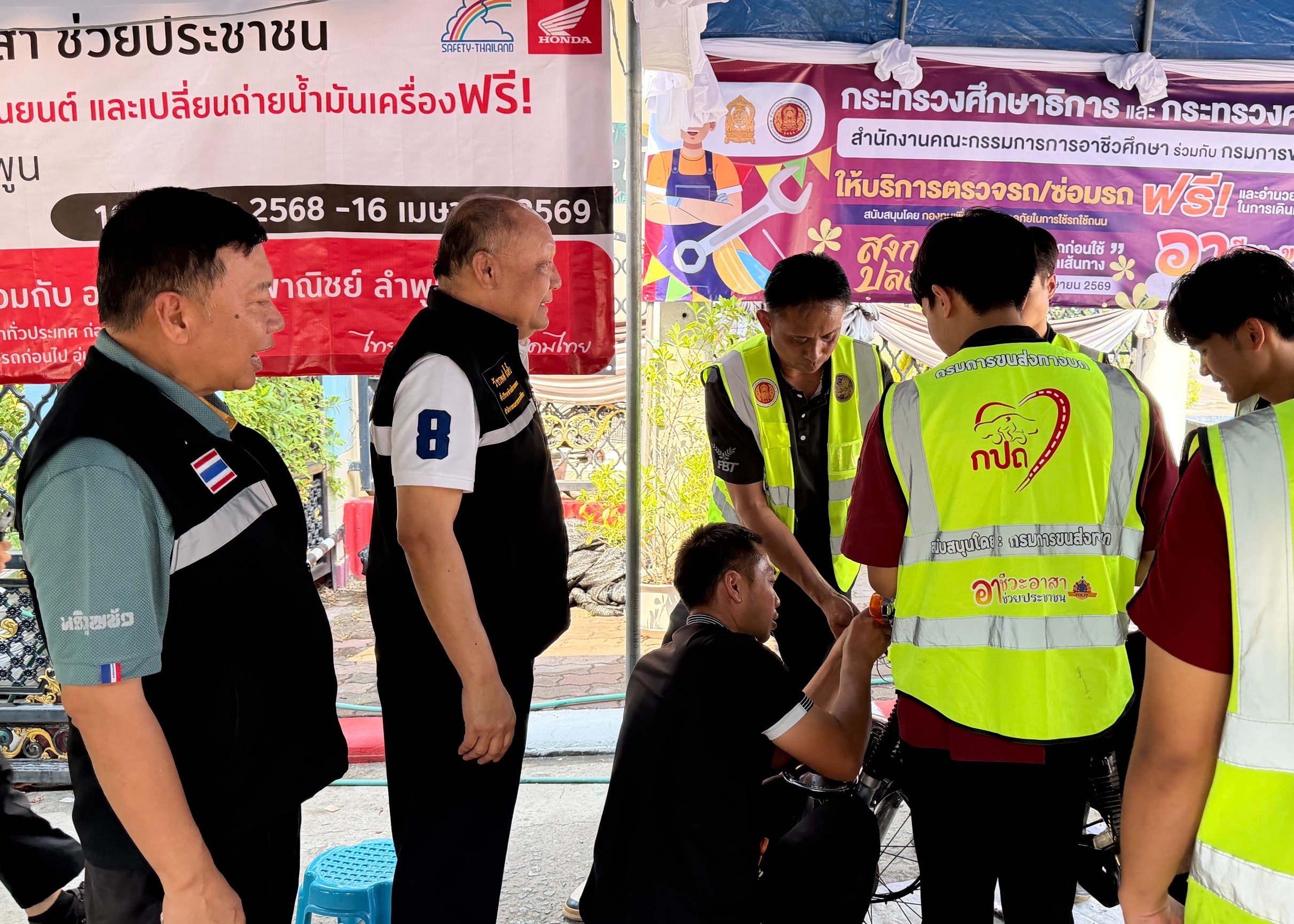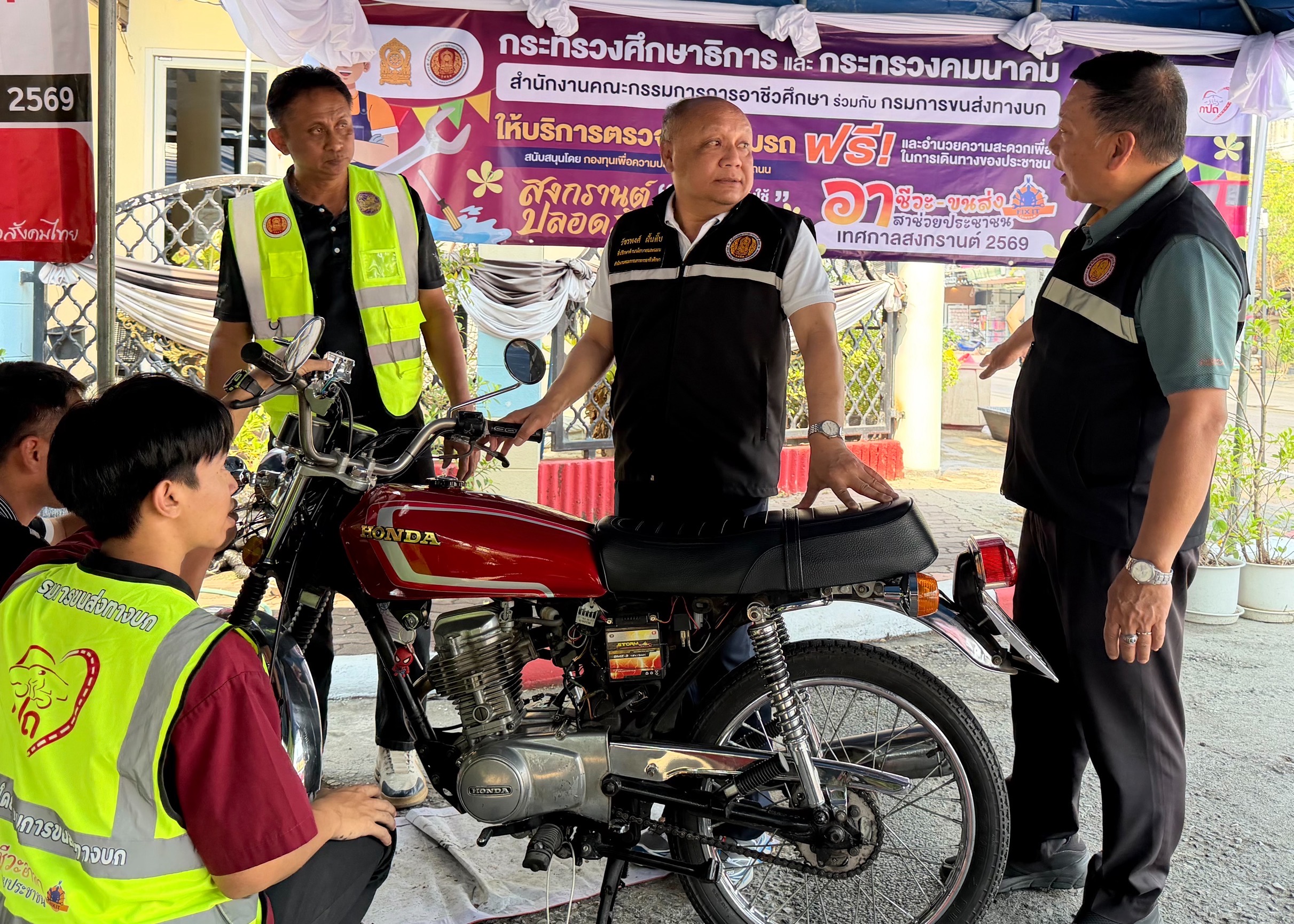 นายยศพล เวณุโกเศศ เลขาธิการคณะกรรมการการอาชีวศึกษา มอบหมายให้ ดร.วัชรพงศ์ ฝั้นติ๊บ ผู้อำนวยการวิทยาลัยเทคนิคเชียงใหม่ ปฏิบัติหน้าที่ผู้อำนวยการสำนักงานอาชีวศึกษาจังหวัดเชียงใหม่ และรักษาการในตำแหน่งที่ปรึกษาด้านนโยบายและแผน สำนักงานคณะกรรมการการอาชีวศึกษา ลงพื้นที่ตรวจเยี่ยมและให้กำลังใจ “ศูนย์อาชีวะ-ขนส่ง อาสาช่วยประชาชน” เทศกาลสงกรานต์ 2569 ในเขตพื้นที่ จังหวัดเชียงใหม่ และจังหวัดลำพูนพร้อมน้ำดื่มและน้ำมันหล่อลื่นเครื่องยนต์ เพื่อเป็นการสนับสนุนและให้กำลังใจแก่คณะผู้บริหาร คณะครู บุคลากร และนักเรียน นักศึกษา ที่ปฏิบัติหน้าที่ด้วยความมุ่งมั่น โดยมีการลงพื้นที่ ใน 4 จุดบริการ ดังนี้