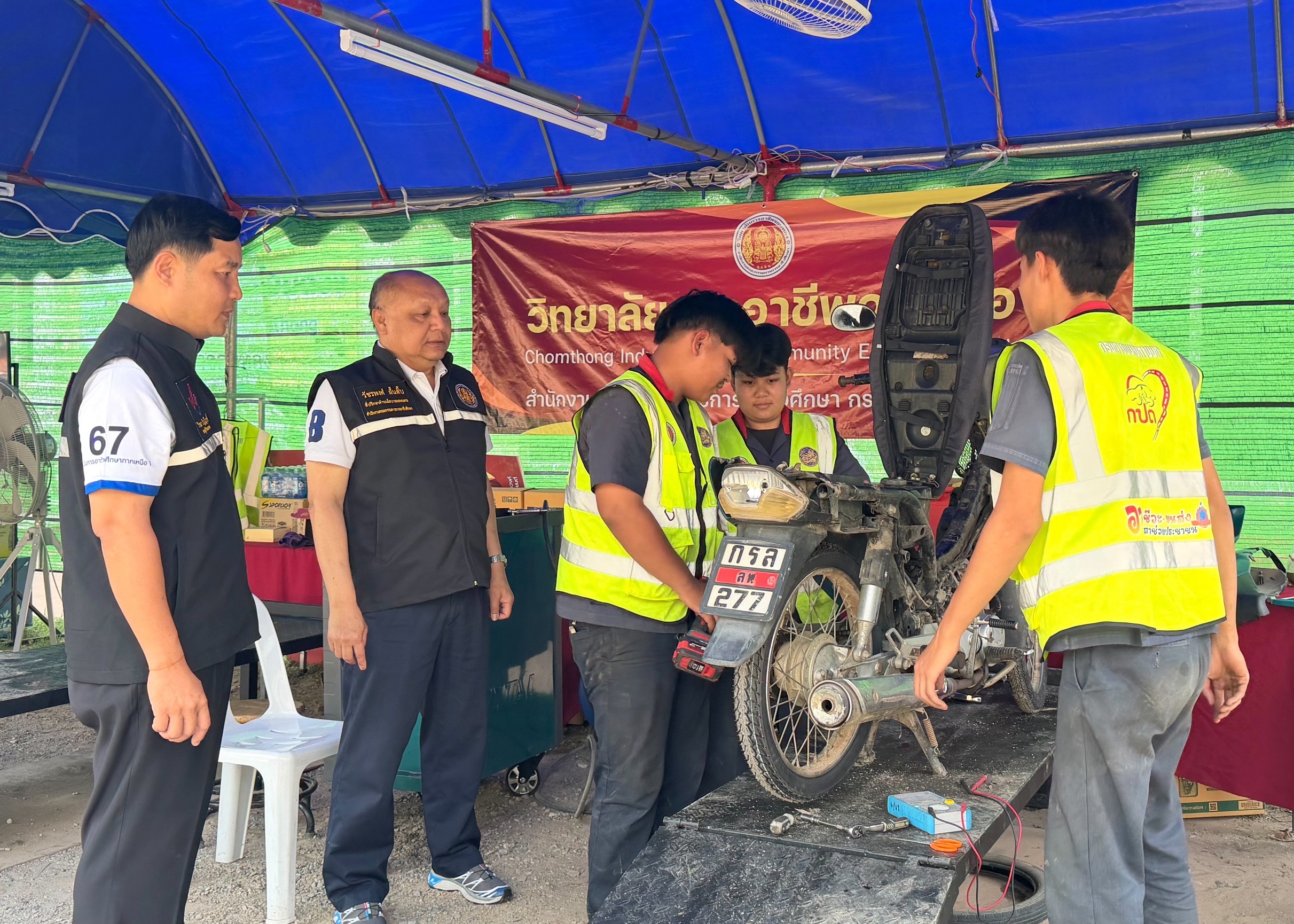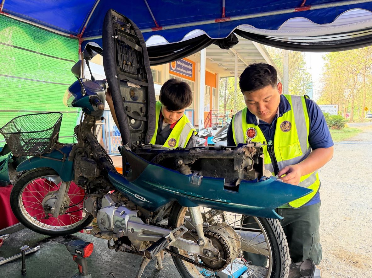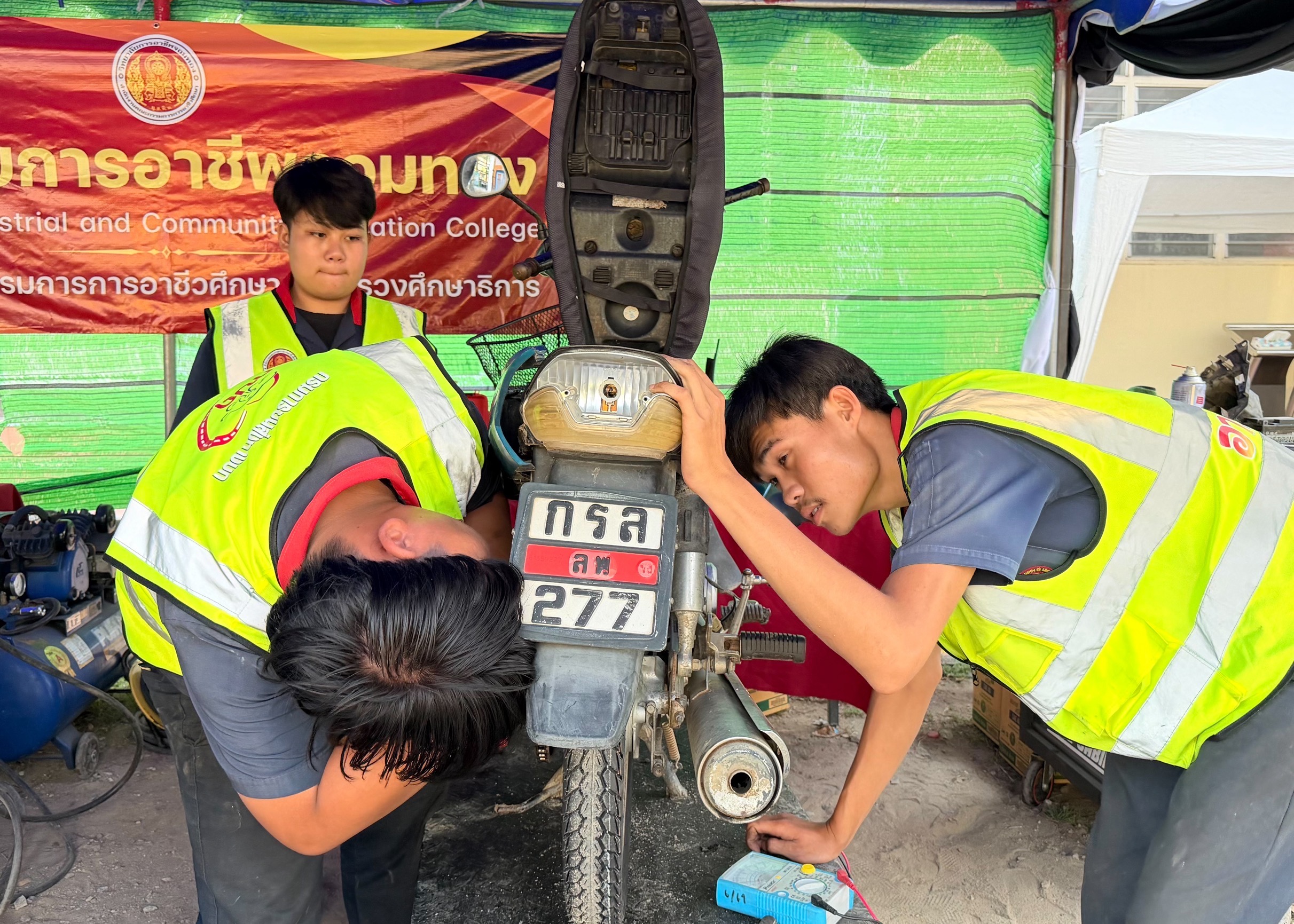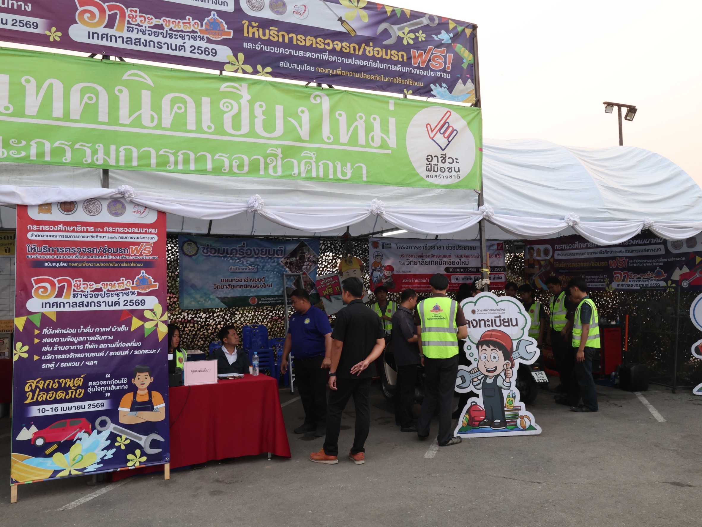จุดบริการหน้ากองพลทหารราบที่ 7 ตำบลดอนแก้ว จังหวัดเชียงใหม่ โดยมีผู้บริหาร คณะครู และนักศึกษาให้การต้อนรับ ศูนย์อาชีวะ-ขนส่ง อาสาช่วยประชาชน 2569 จัดตั้งเพื่ออำนวยความสะดวกช่วงเทศกาล ให้บริการตรวจเช็ครถเบื้องต้น จุดพักรถ น้ำดื่ม และคำแนะนำด้านความปลอดภัย มุ่งลดอุบัติเหตุ เสริมความมั่นใจในการเดินทาง สะท้อนพลัง “อาชีวะจิตอาสา” เคียงข้างประชาชนช่วงสงกรานต์
