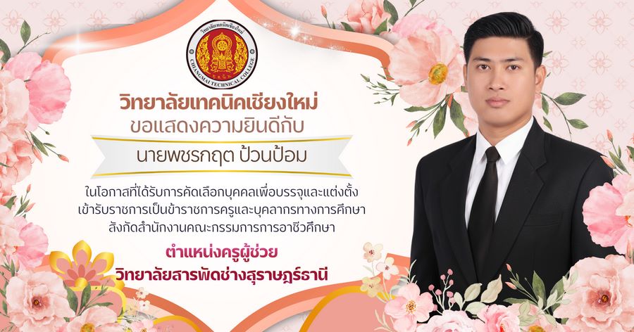 วิทยาลัยเทคนิคเชียงใหม่ ขอแสดงความยินดีกับ